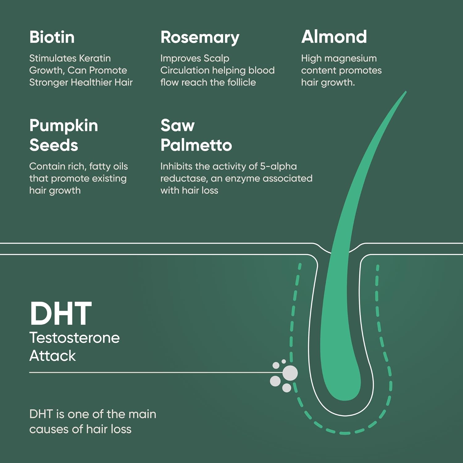 Organic and Natural – Infused with Biotin, Argan, Pumpkin Seed Oil. Our Natural Shampoo is the ultimate DHT blocker which can help boost scalp health and support hair growth. Enriched with rosemary oil, it delivers glossier, denser, and naturally thicker hair, redefining your hair care experience.