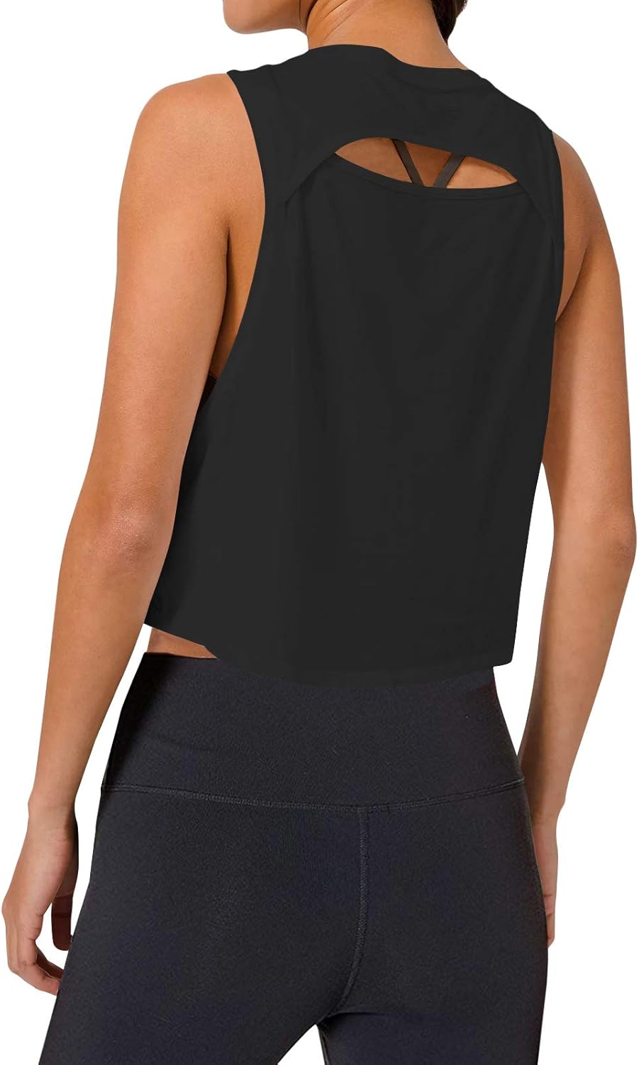 REORIA Women Crop Tops Workout Tops Loose Sleeveless Cropped Muscle Tank Open Back Shirts
