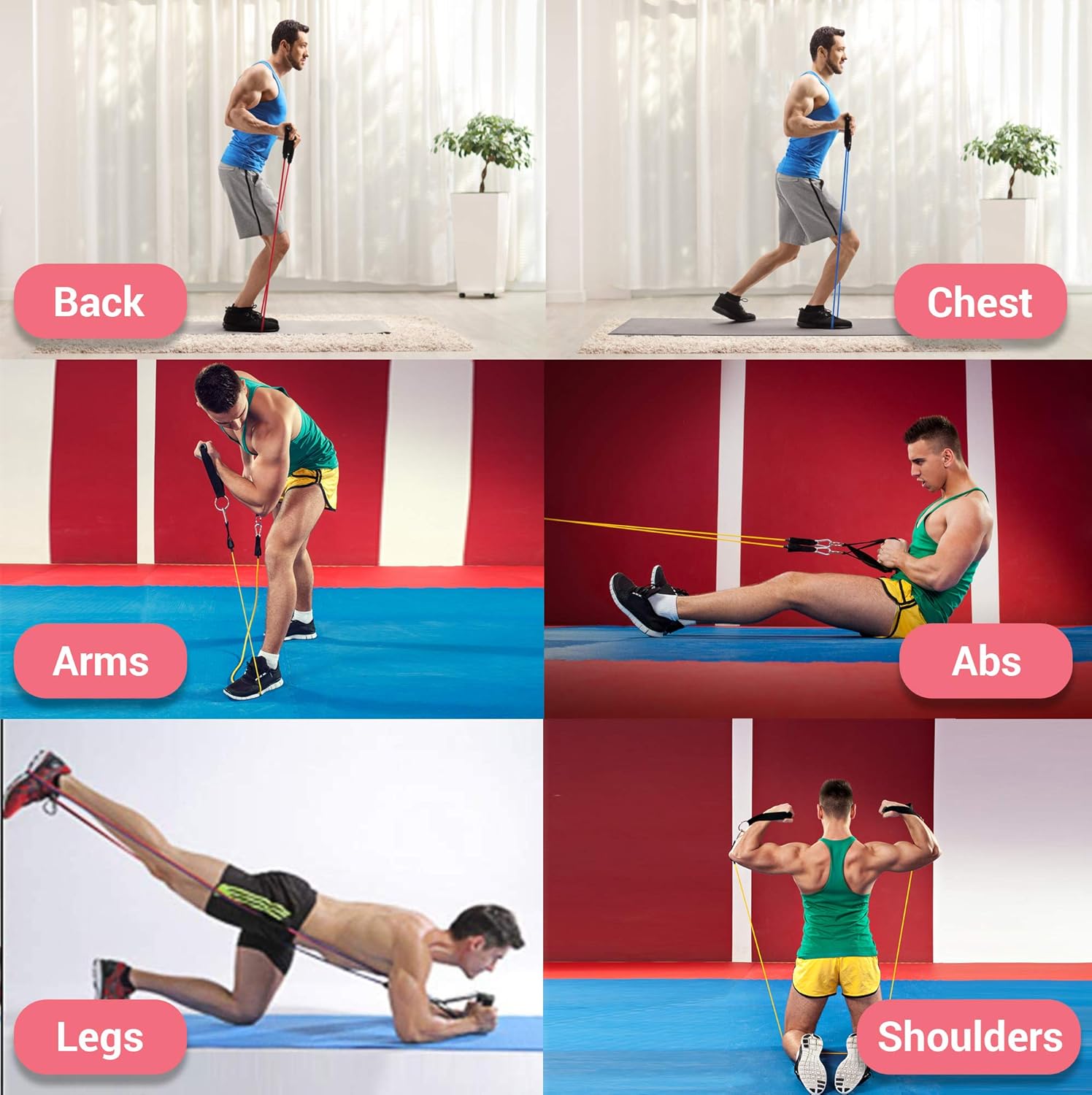 Perfect Gym equipment for home: Our exercise tubes are like a mini multi gym. This set includes foam handles, ankle straps, door anchor & carrying pouch for hassle-free transporting of exercise bands.