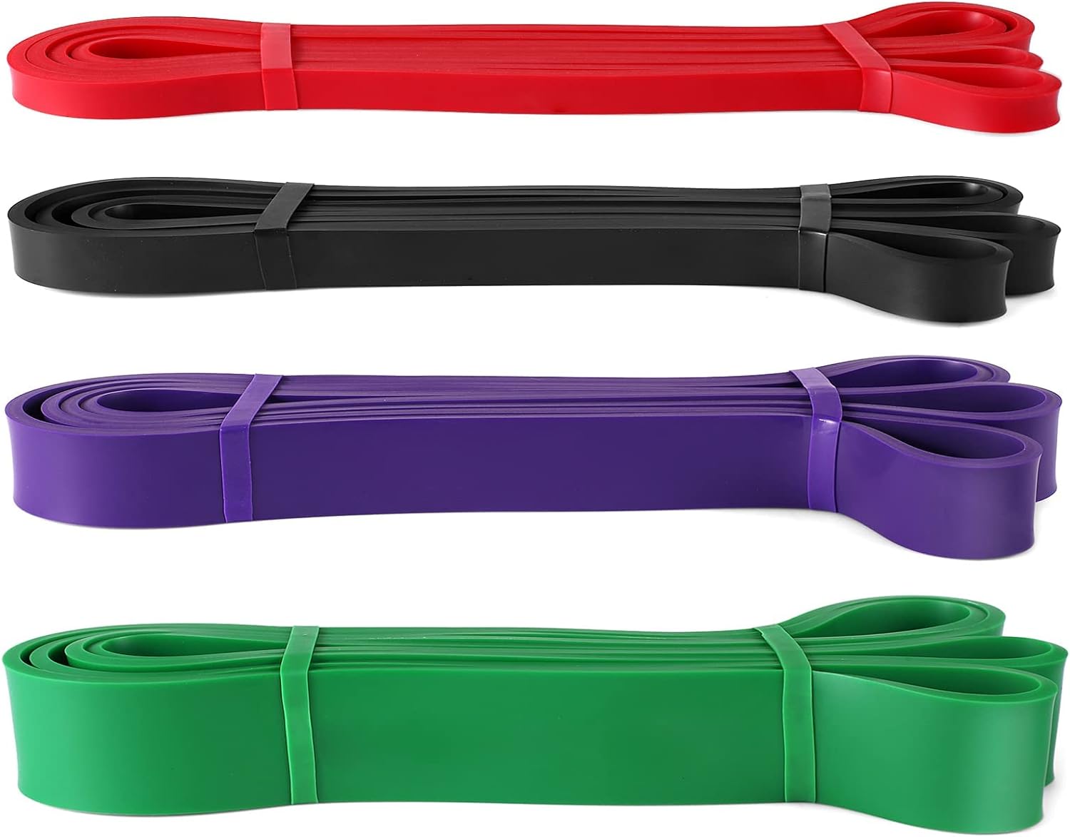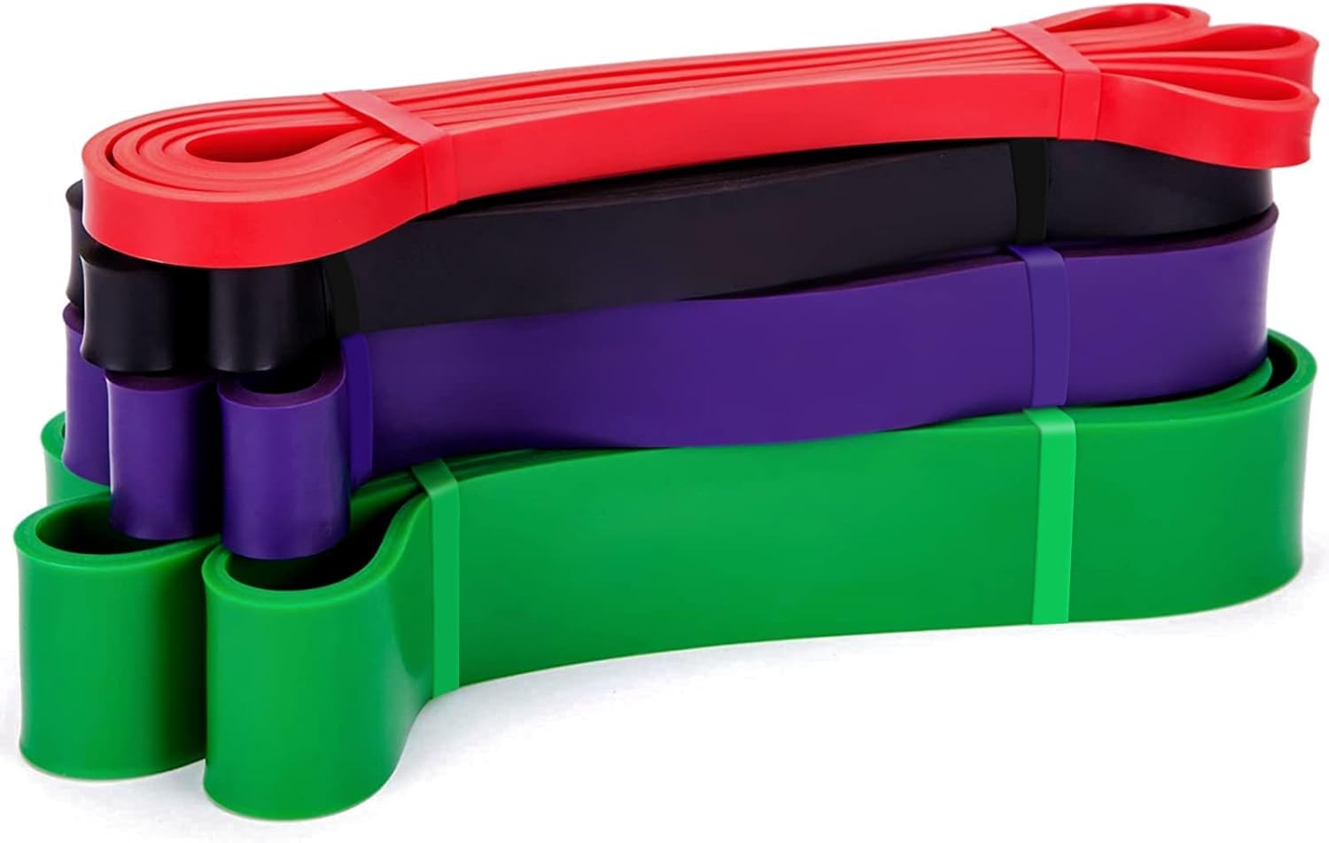 Pull Up Assist Bands Have Multiple Resistance Levels: The pull-up assist band set comes with 4 different color bands: red(15 to 35 lbs), black(25 to 65 lbs), purple(35 to 85 lbs), green(50 to 125 lbs).