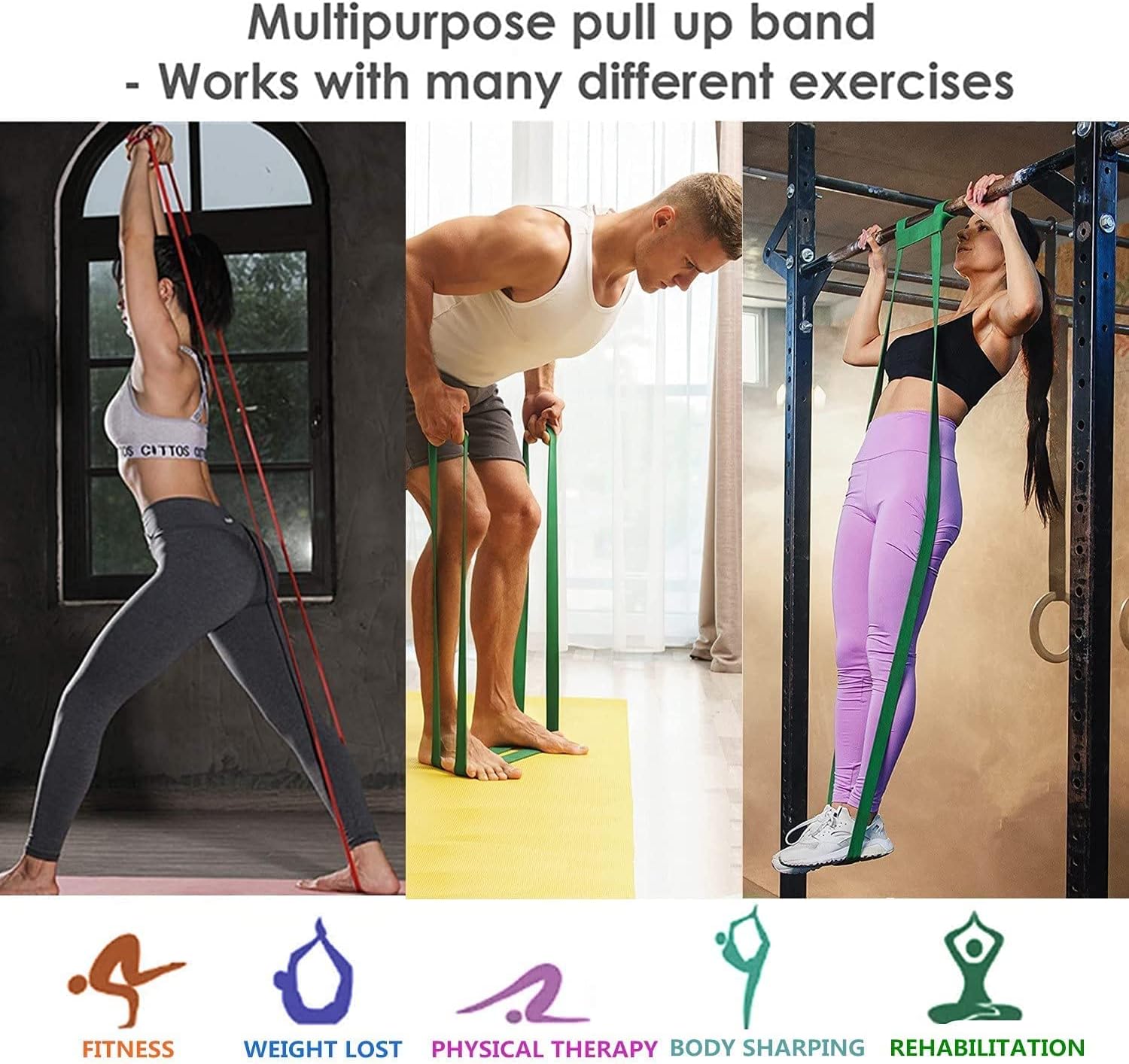 Working out with resistance bands helps stimulate major muscle groups, it can give you a better pull up support & more ways to training your curved body. Achieve your personal goals and improve overall health, build muscle strength, improve physical endurance, coordination and flexibility.