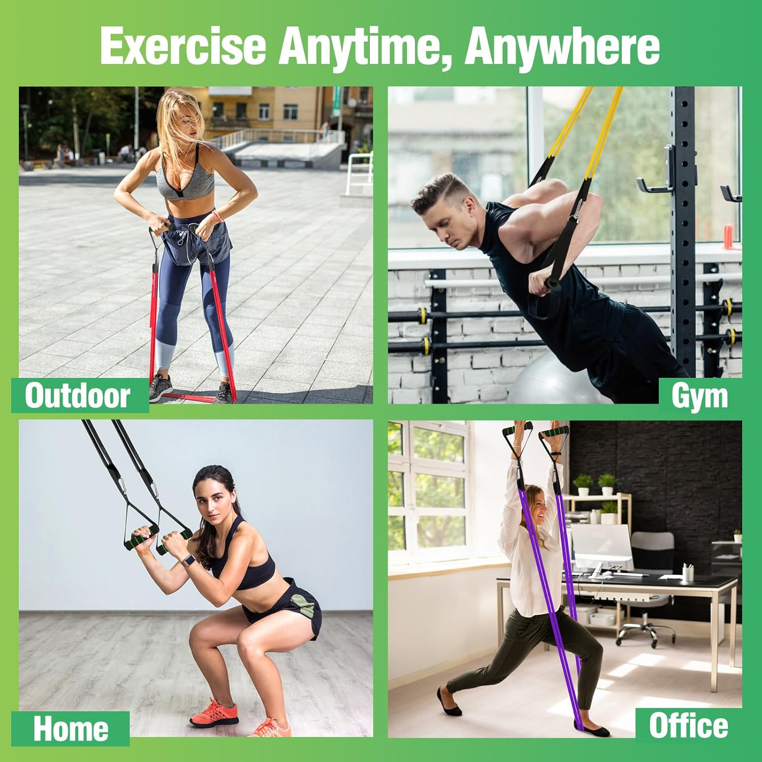 【PROFESSIONAL CUSTOMER SERVICE】The resistance bands set includes: 4*resistance bands, 2*handles, 1*door anchor, 2*protective covers, 1*exercise poster, 1*carry bag. If you encounter any problems when using the resistance bands, please contact us and we will help you solve the problem within 24 hours. If you are not satisfied with our elastic gym bands, we will refund the full purchase price or replace it with a new product.
