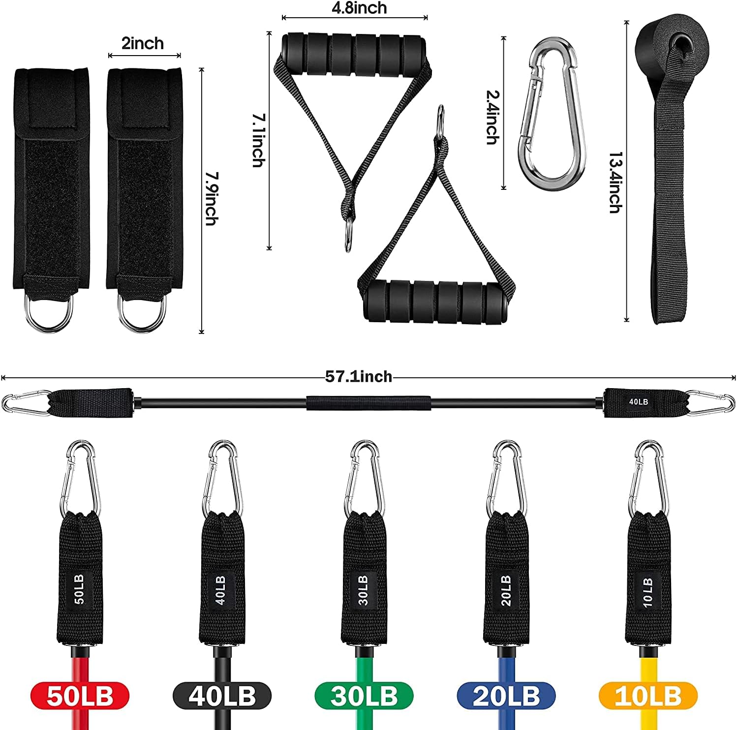 A Full Set of Fitness Resistance Bands Exercise – 5 RESISTANCE BANDS TUBES, 2 ANTI-SLIP FOAM HANDLES, 2 SOFT ANKLE STRAPS,1 DOOR ANCHORS, 1 WATERPROOF CARRY BAG, This gym sets for women piece designed to help you maximize your workouts at home and it will meet your personal training needs, These fitness bands resistance men are gymnastics equipment for home tool save your time and money. your satisfaction is our first priority.