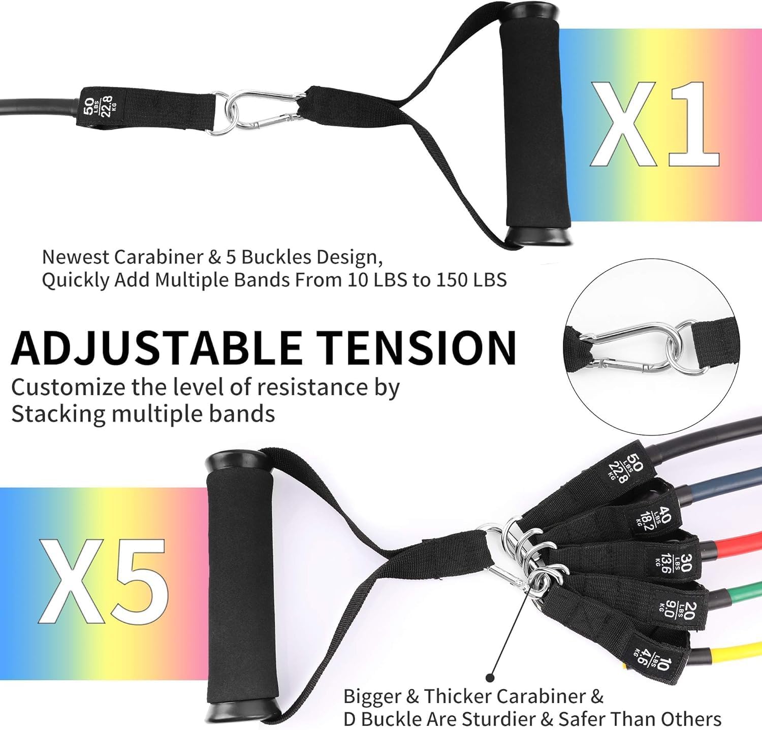 💪【Versatility, make fitness simple】 While free weights (barbells, dumbbells, kettlebells) have long been a fixture in gyms, and weight machines are stable and easy to use, neither has the versatility of weight bands. resistence. 5 bands can be used alone or stacked in any combination of intensity from 10lbs to 150lbs.