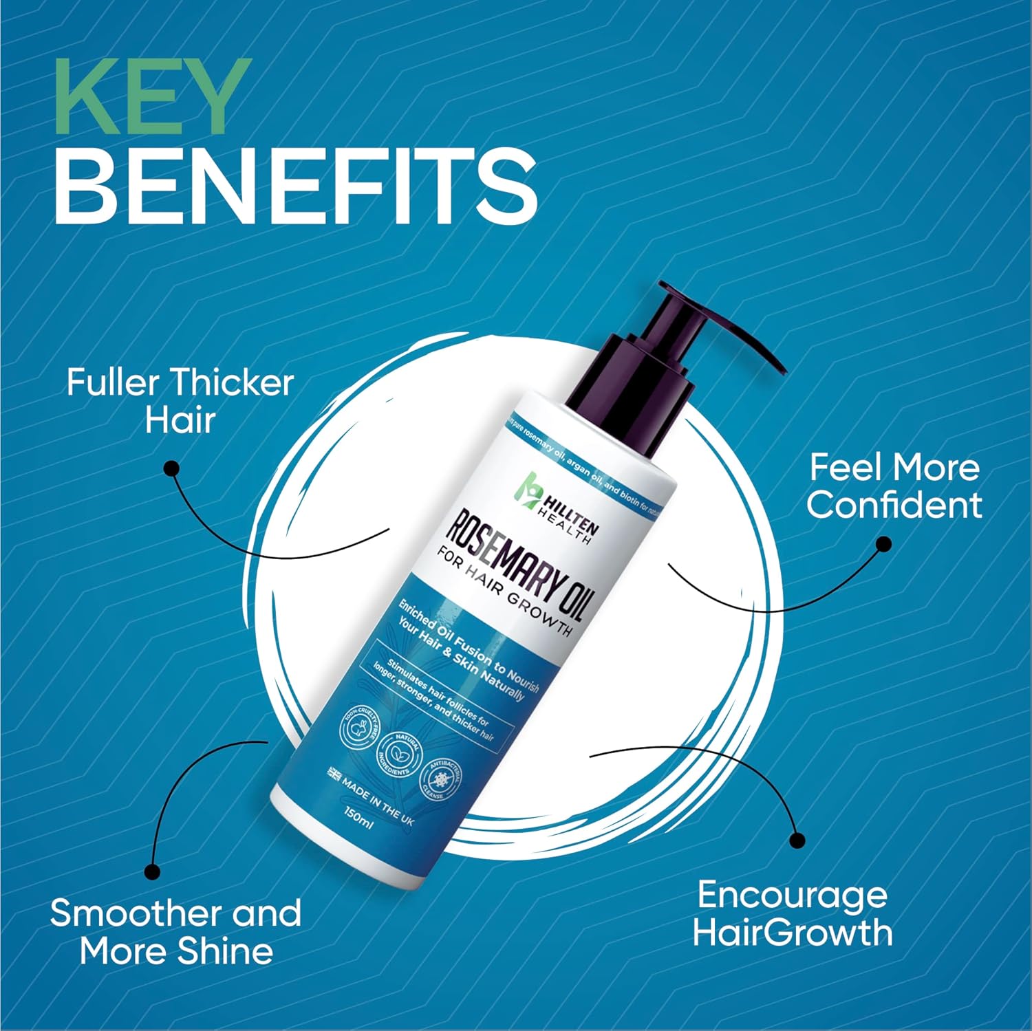 Our 150ml bottle is packed with pre diluted rosemary oil for hair growth, argan oil, and biotin, specially formulated to provide a range of benefits for your hair, skin and works as a scalp oil. Meaning you get more product, for less!