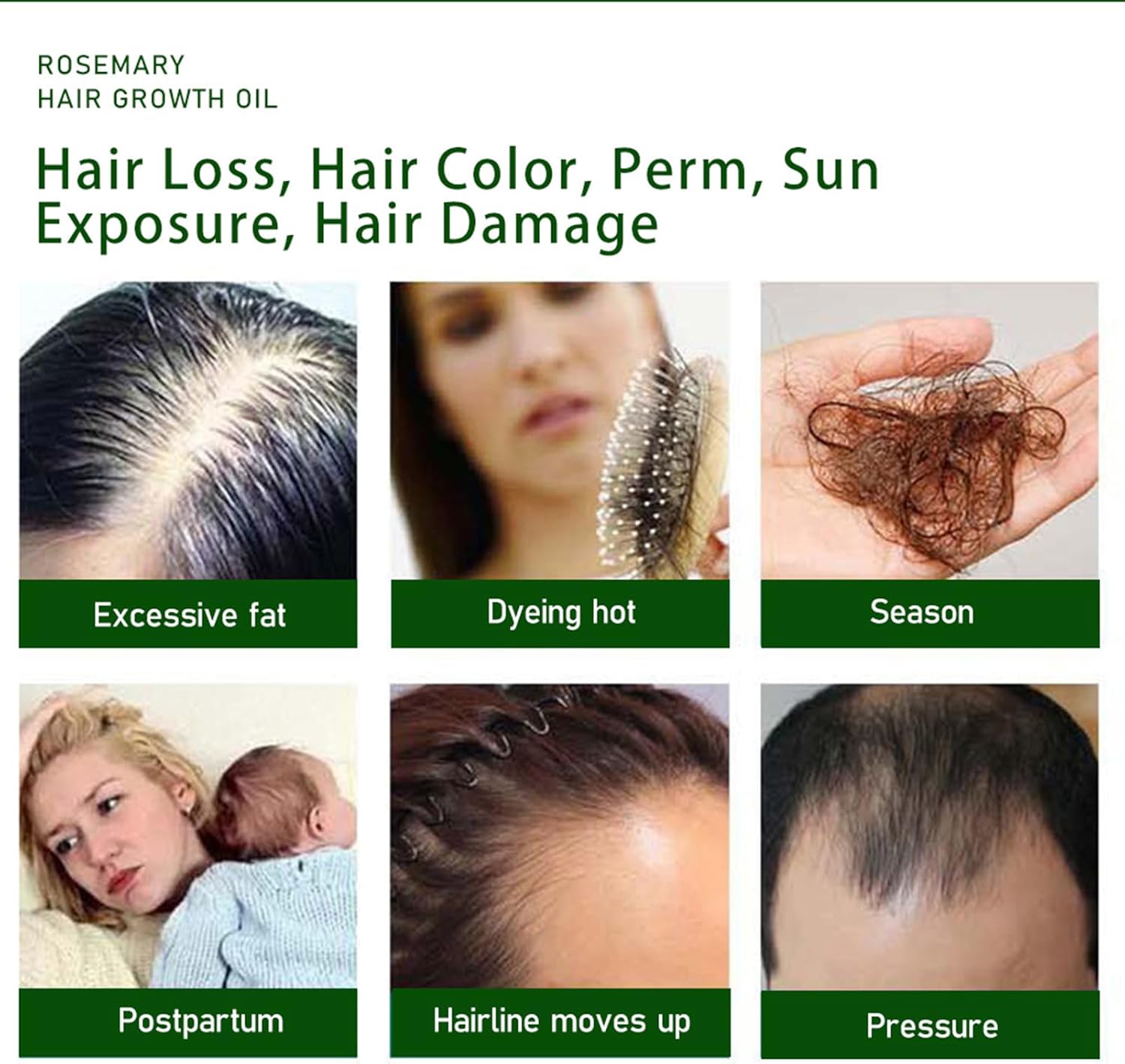 【Rosemary Oil For Hair Growth】 Our rosemary essential hair oil uses its unique organic ingredients to naturally activate the dormant hair follicles, awaken the sleeping hair follicles, and make them rejuvenate, thus promoting hair growth again.