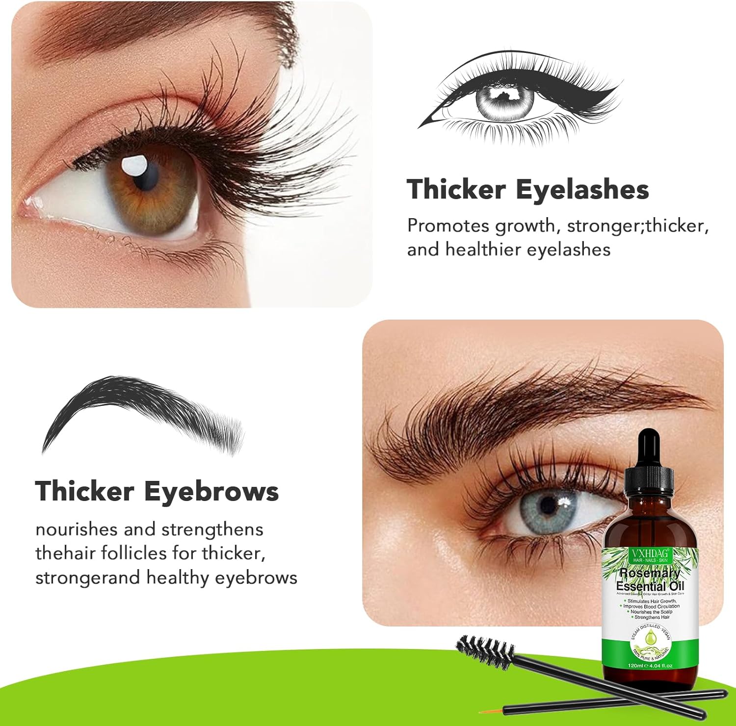 Rosemary Oil for Hair Growth with Scalp Massager – 100% Pure Natural Organic Rosemary Essential Oil for Eyebrow Eyelash, Nourishes The Scalp, Stimulates Hair Growth for All Hair Types 120ML