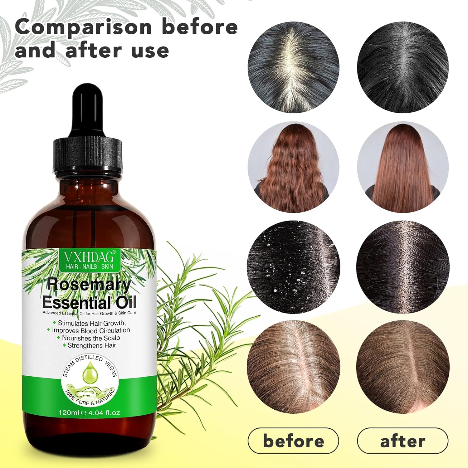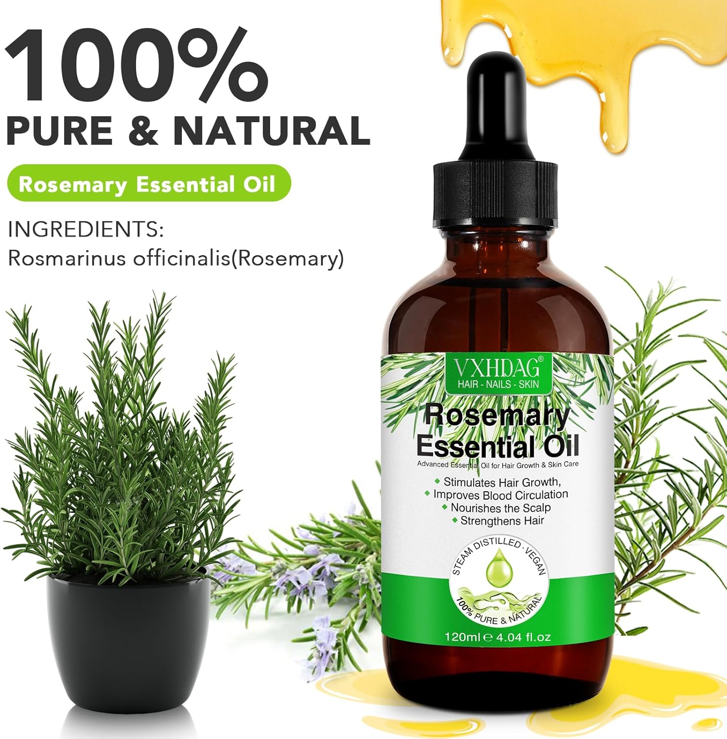 [MULTIPLE USES] Rosemary essential oil is widely used in hair and scalp massage. To massage the scalp and hair with Rosemary essential oil, dilute a few drops of the oil with a carrier oil and massage gently. You can also mix a few drops of rosemary essential oil with shampoos, conditioners and hair masks for regular use. Rosemary essential oil can create your own DIY hair oil recipes. You can even make customized aromatherapy blends, perfumes and more with the essential oil.
