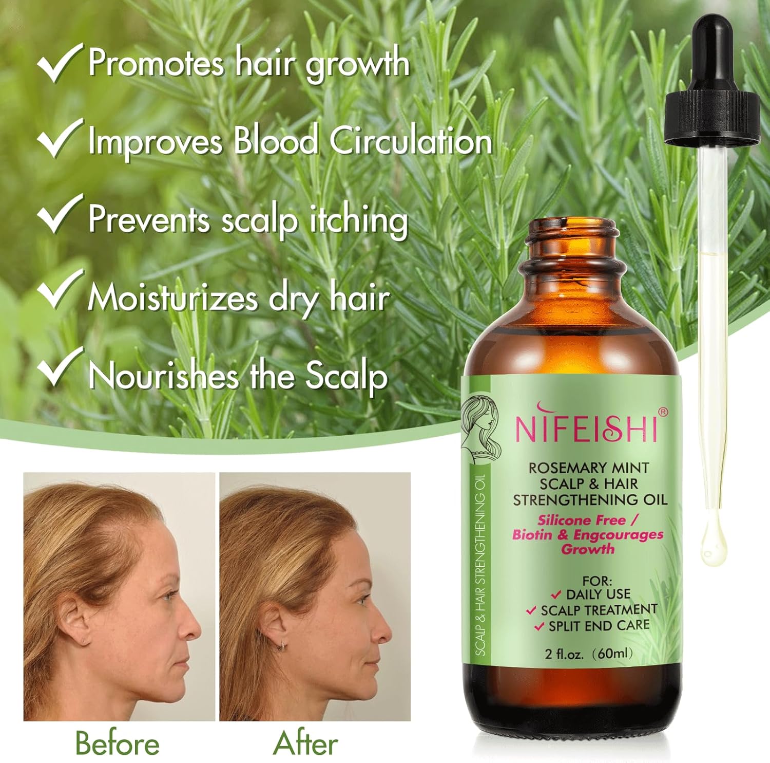 🌿NOURISHING SCALP – Rosemary hair oil helps to calm and cleanse the scalp to reduce itchiness. It’s a natural solution to promote hair growth and improve the overall health of your hair.