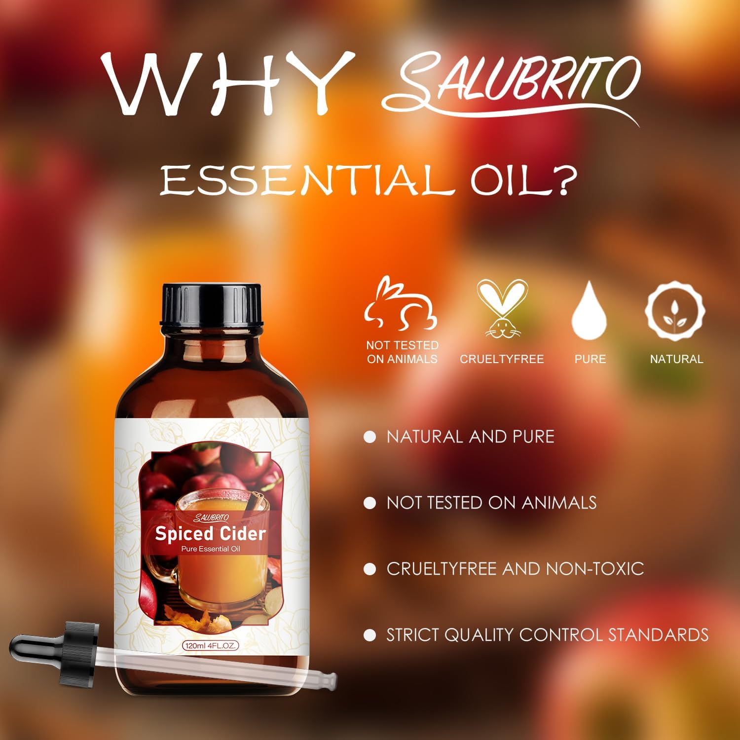 SALUBRITO Spiced Cider Essential Oil, 120ml, Pure & Natural Aromatherapy Oils, Fragrance Oil for Diffuser, Great for Skin, Headache, Relaxation, Sleep, Candle & Soap Making, Strong Scented