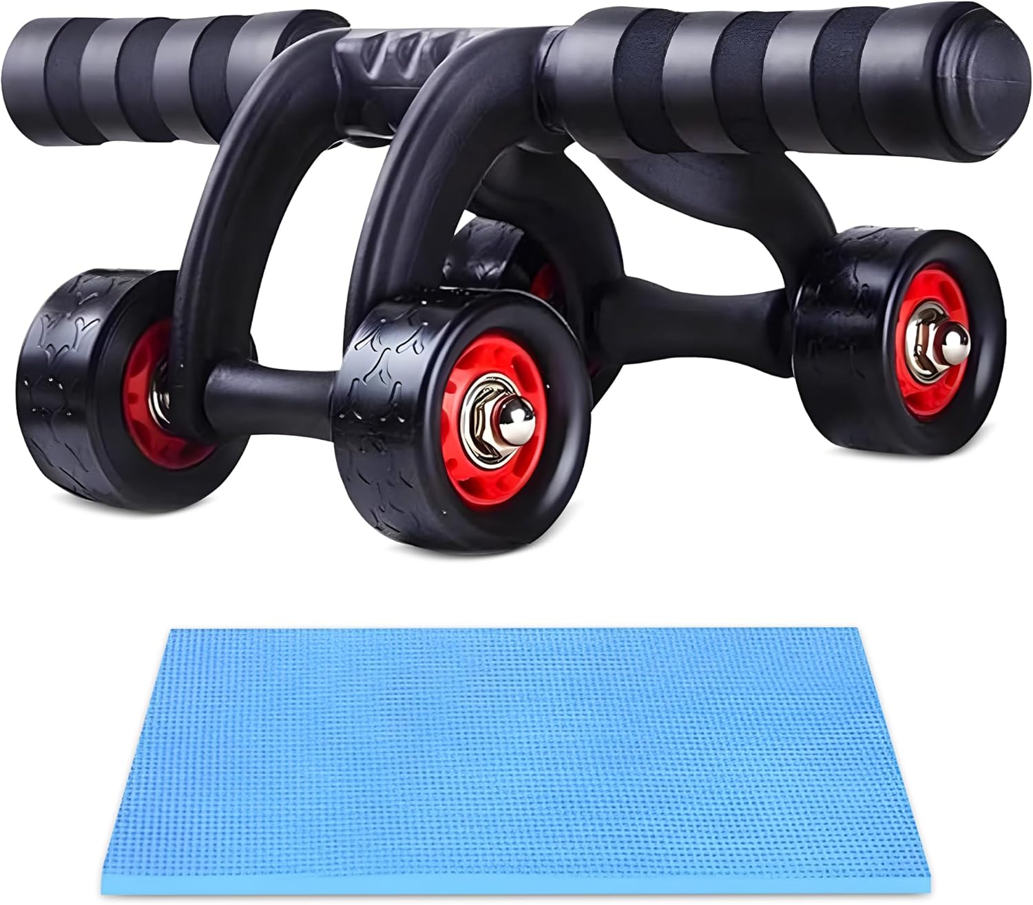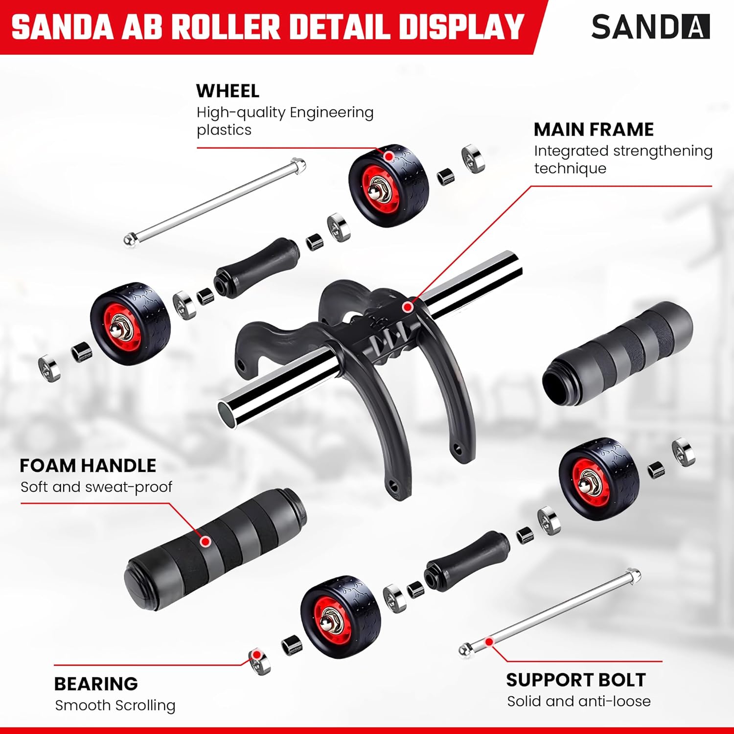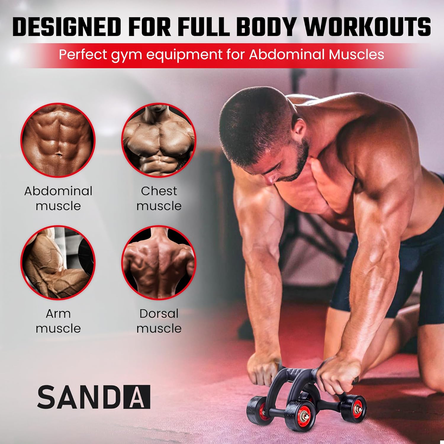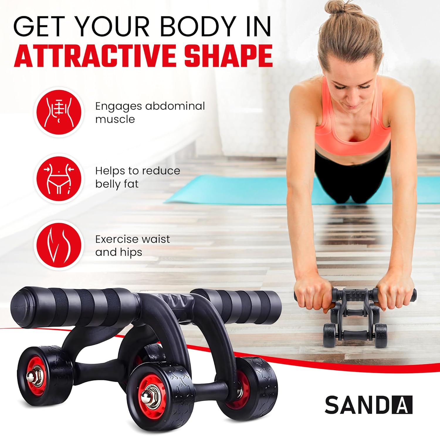 SANDA 4 Wheel Ab Roller With Foam Knee Pad And Push Up Bar, Strength Training Equipment, Stomach Exercise Equipment, Sit Up Exercise Equipment, Push Up Exercise Equipment, Ab Machine, Ab Trainer