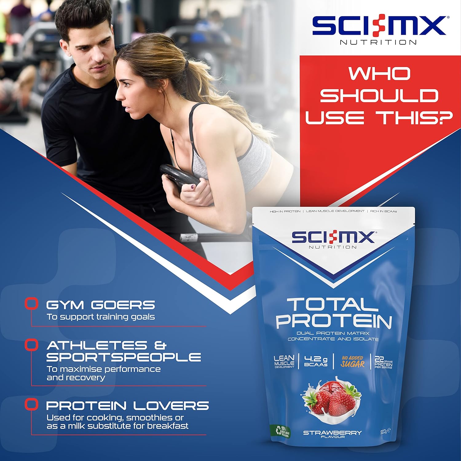 SCI-MX Total Protein Duo Protein Muscle Building & Recovery Blend Powder With Naturally Occurring Glutamine & Amino Acids – Strawberry Flavour – 900G – 30 SERVINGS