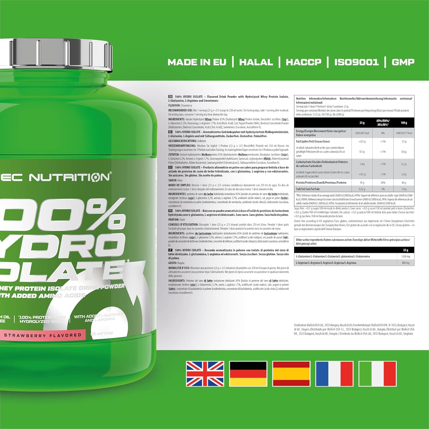 Scitec Nutrition 100% Hydro Isolate – Hydrolyzed Isolate with Glutamine & Arginine – Sugar-Free, Gluten-Free – Post-Workout Recovery, 2000 g, Strawberry