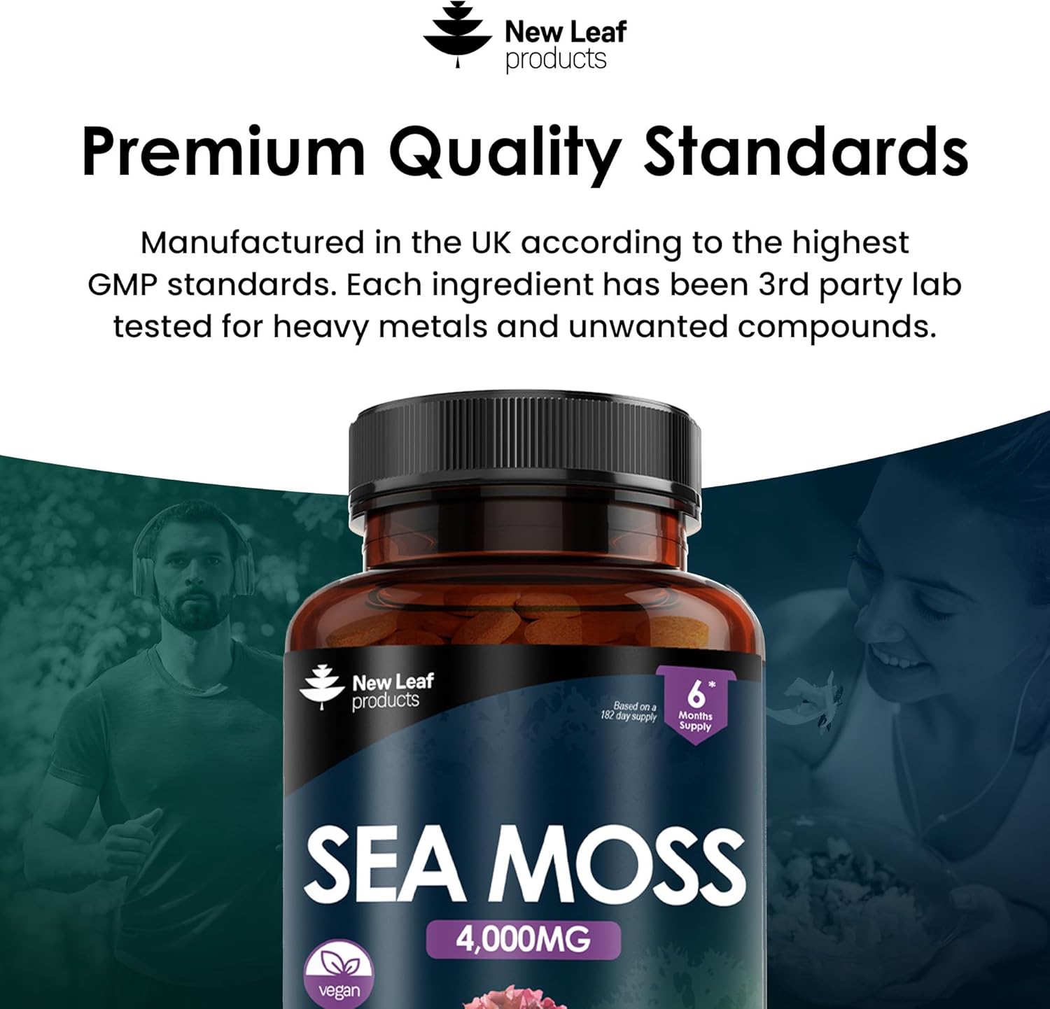 Sea Moss Tablets Extract High Strength 4000mg – Sea Moss Supplement 365 Tablets (not sea Moss Capsule) High Potency – UK Made – Vegan – Non GMO