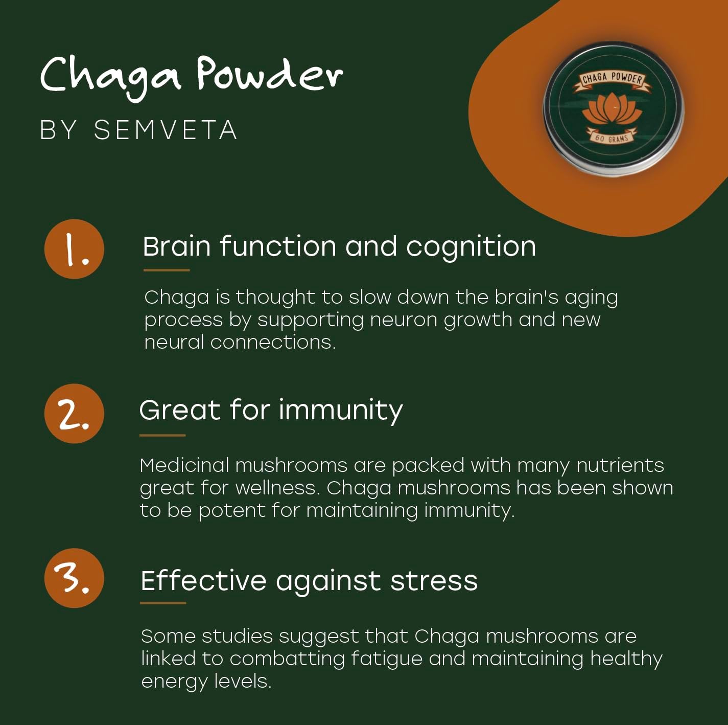Semveta Chaga Powder (60g) – Chaga Mushroom – Rich in Beta Glucans – Nootropic Mushroom Tea – 1 Month Supply – Immune Support & Antioxidants – Pure Chaga Powder