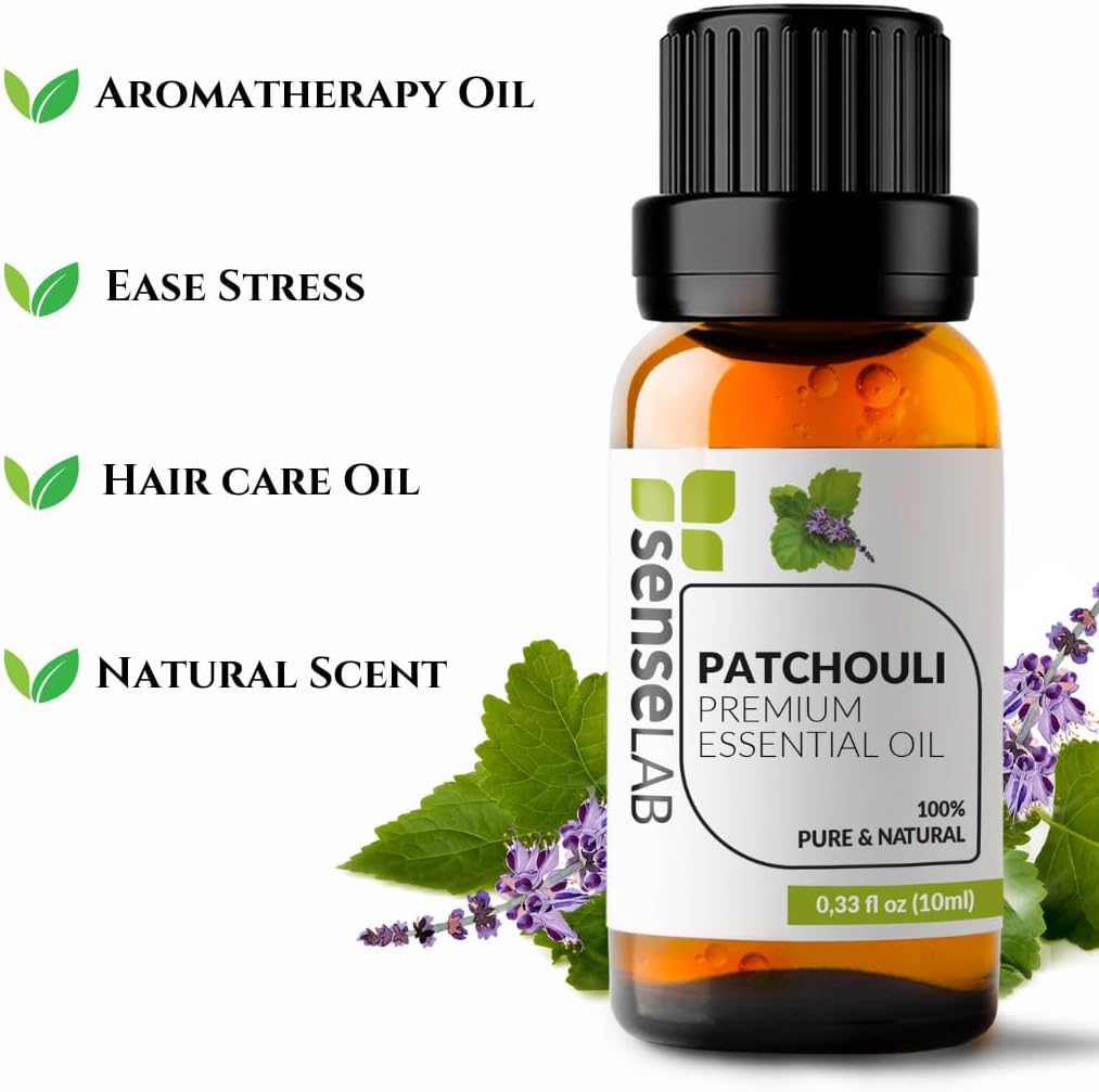 SenseLAB Patchouli Essential Oil – 100% Pure Extract Patchouli Oil – Therapeutic Grade Essential Oils – Fragrance and Relaxation Oil – Hair and Skin Care Oil for Diffuser and Humidifier(10 ml)