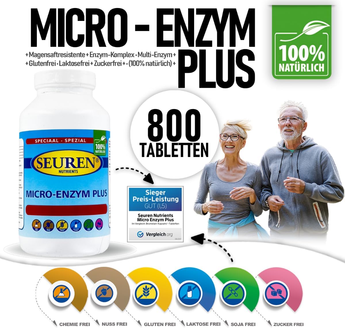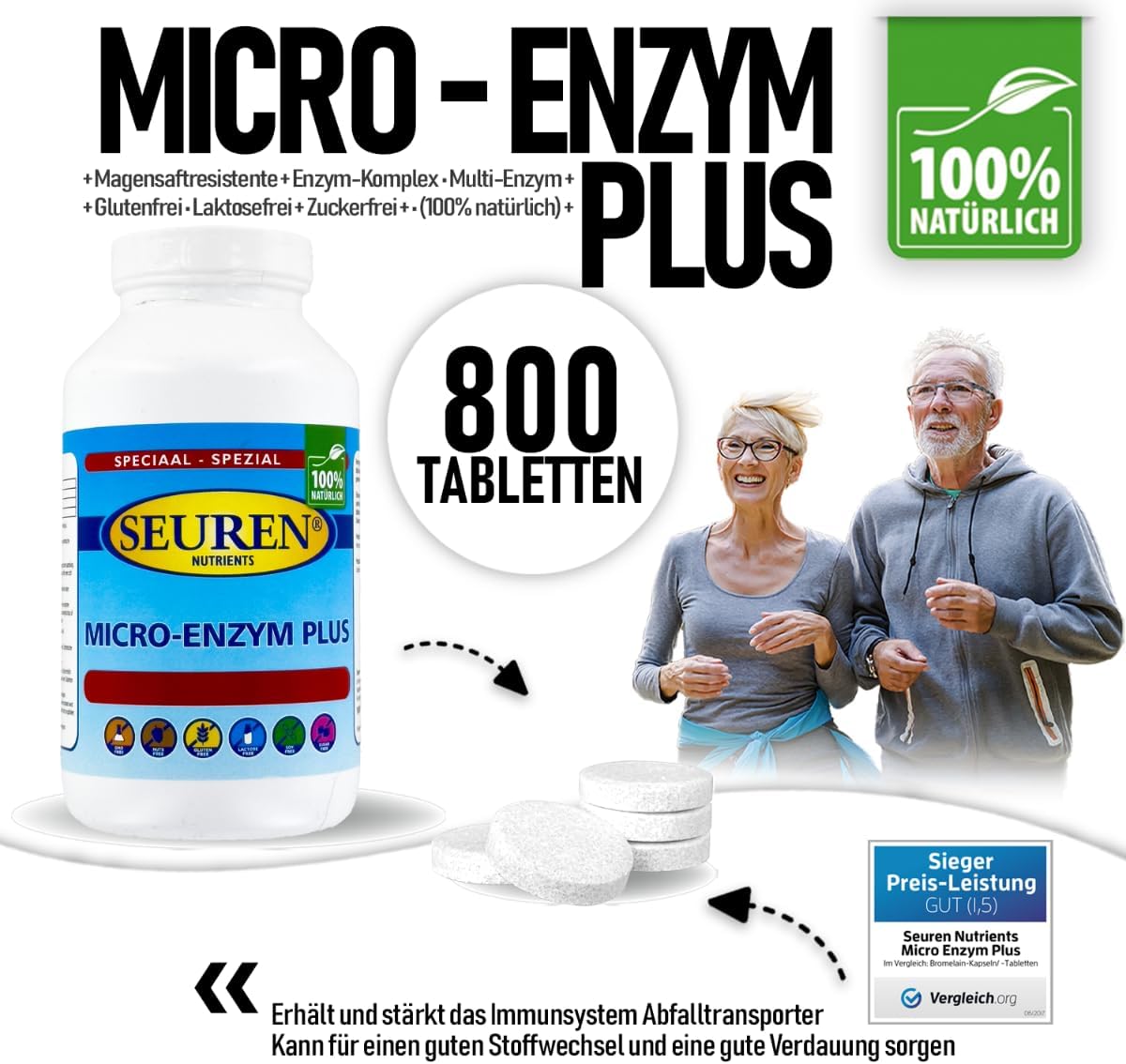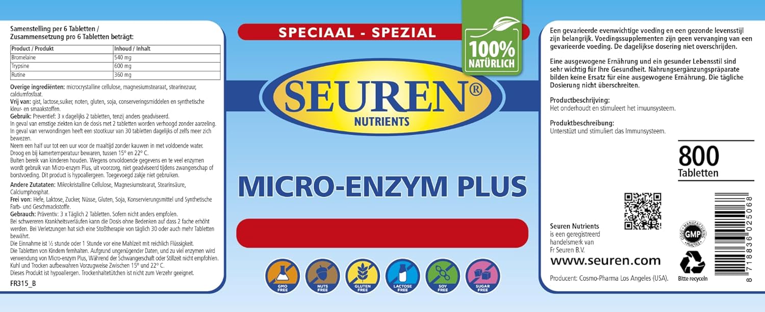 Seuren Nutrients | Micro Enzyme Plus 800 Tablets | Gastro-Resistant | Enzyme Complex | Multi-Enzyme | Gluten Free | Lactose Free | Sugar Free (100% Natural)