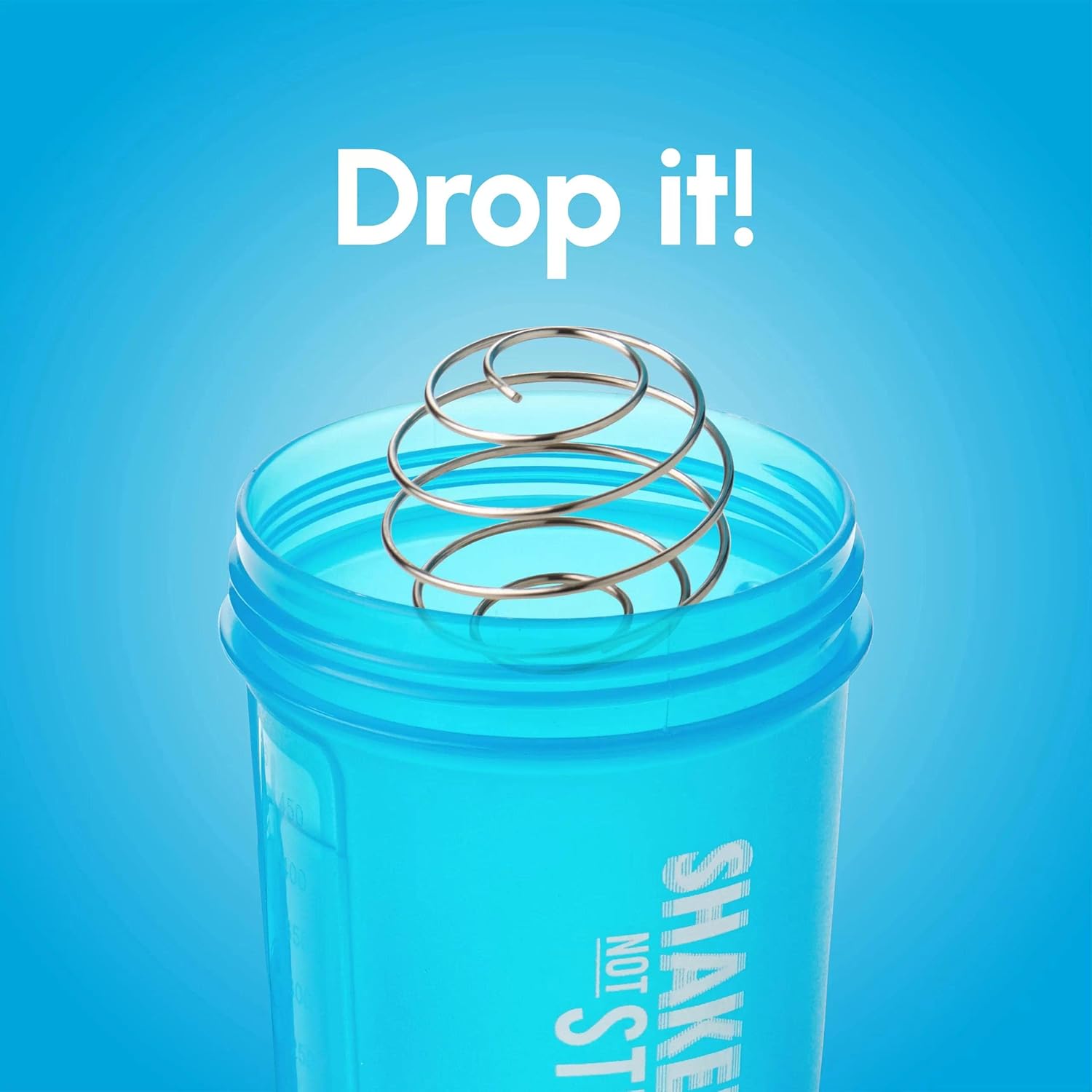 Shake That Weight 450ml Protein Shaker – Blue – With Storage Attachment For Protein and Diet Shake Powder, Wire Ball Mixer, Bag Attachment Loop