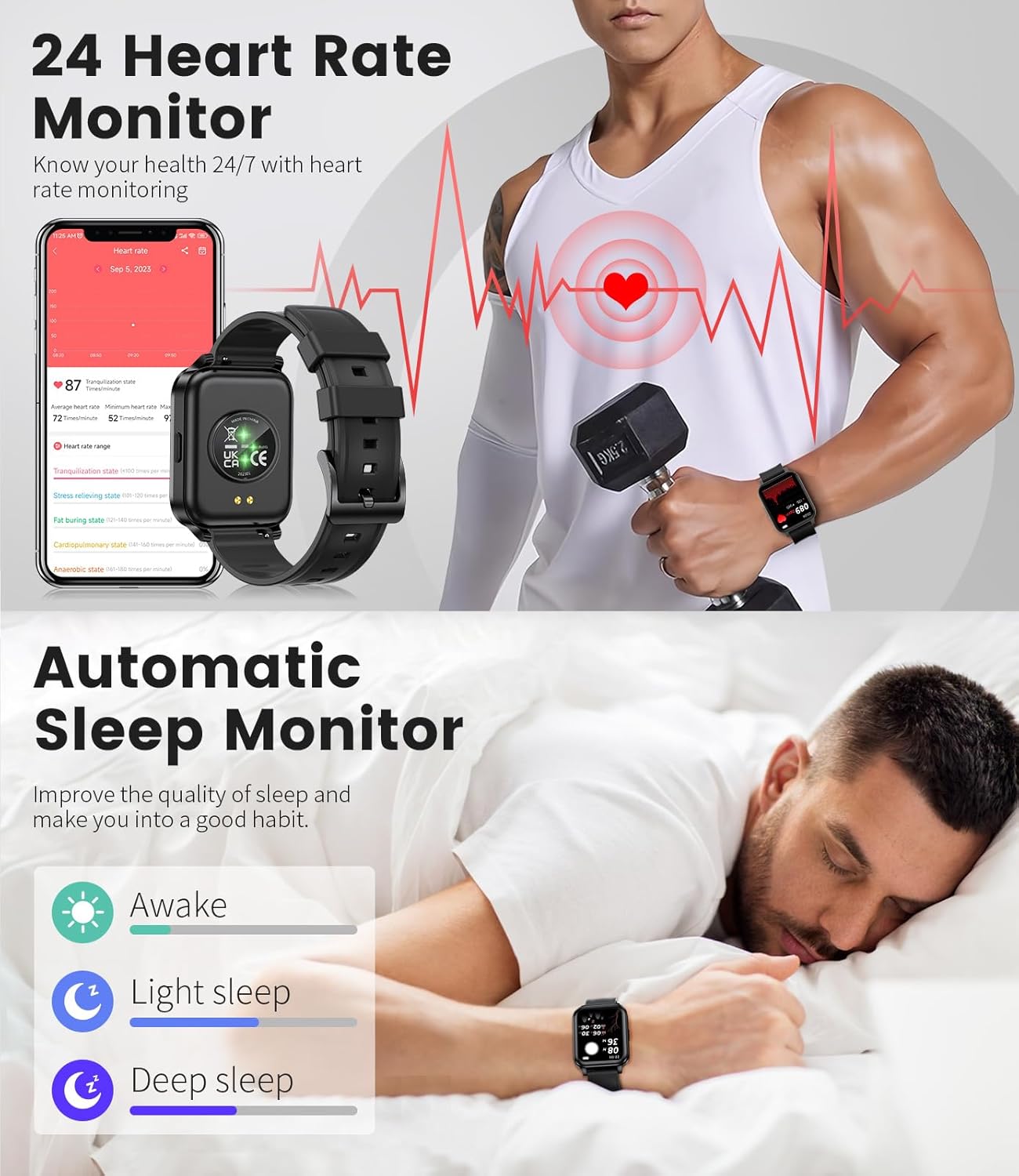 🍀【Wide compatibility & Long Battery Life】This smartwatch has broad compatibility with smartphones running iOS 8.4 and Android OS 4.4 or later. Designed for both men and women, this smartwatch has a high-capacity built-in battery that can be fully charged in just 2 hours. With up to 7 days of use and approximately 30 days of standby time, this watch ensures a long and uninterrupted experience