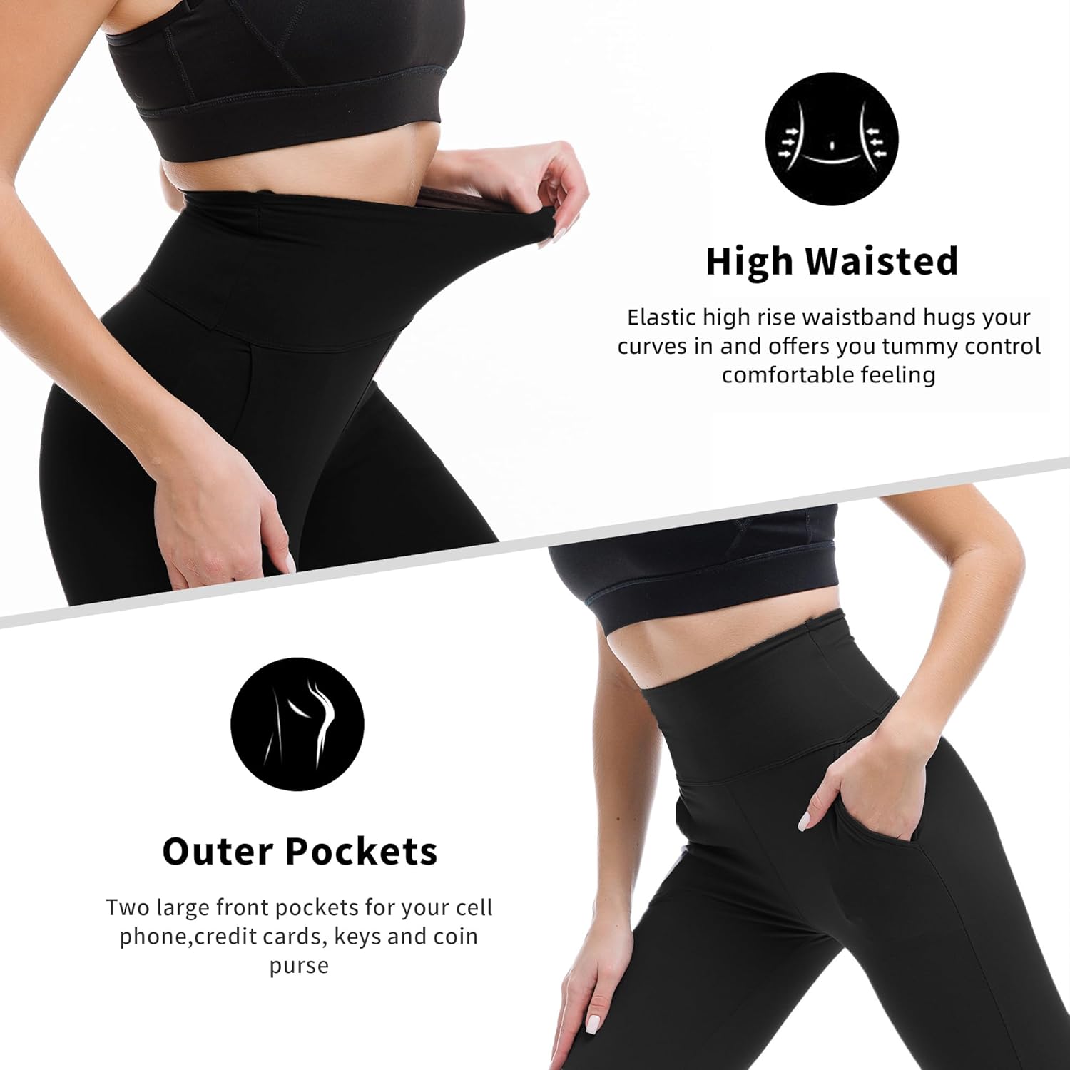 SINOPHANT womens workout leggings have two large front pockets for your cell phone,credit cards, keys and coin purse.