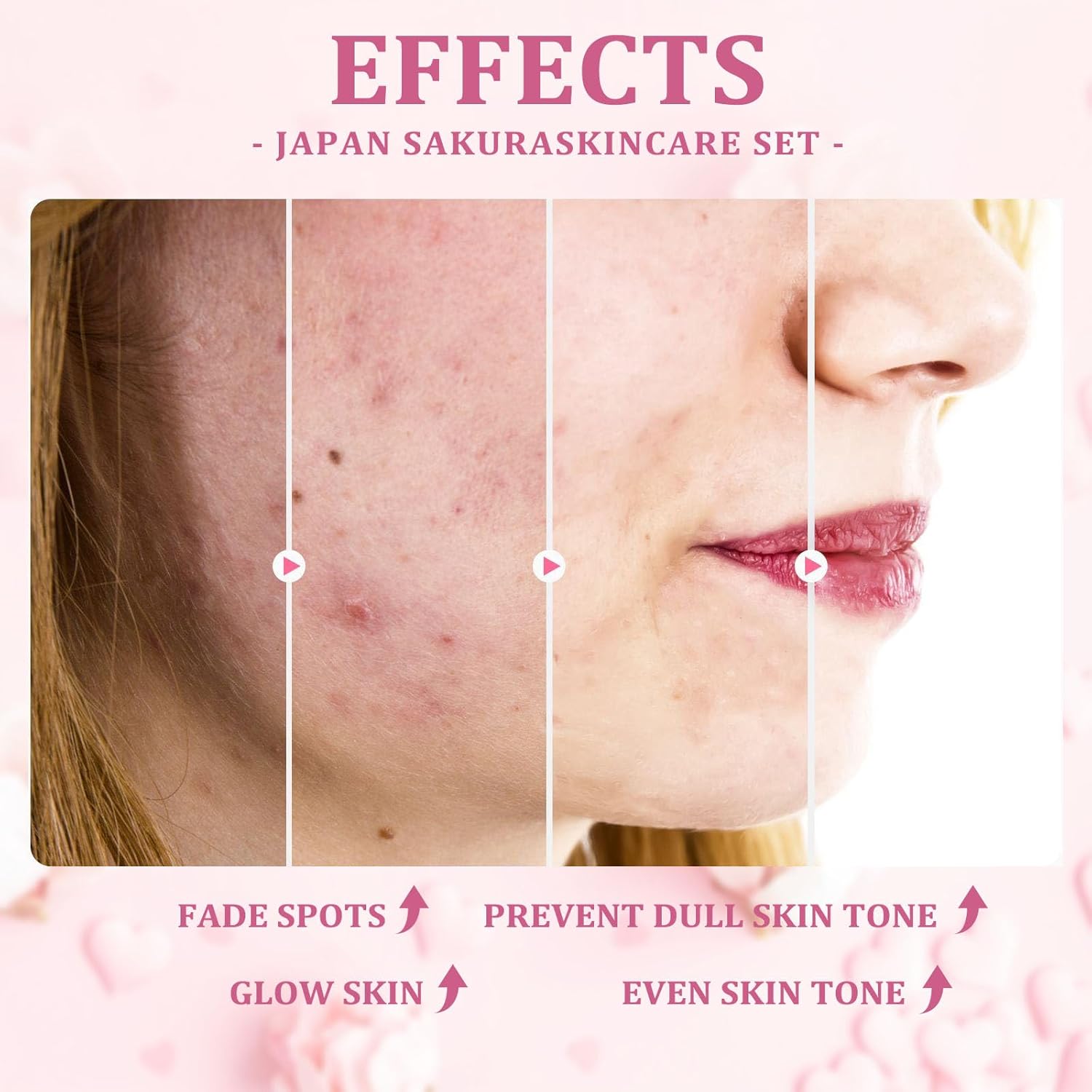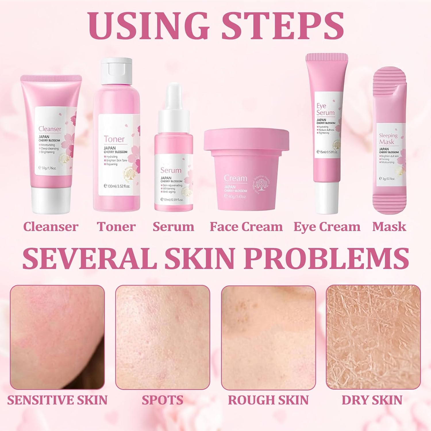 Skincare Set Skin Care for Teenage Girls,7 PCS Skin Care Sets & Kits,Glowing Beauty Skincare Kit, Teenage Skincare Set Products to Cleanse Natural Sakura Blossom Skincare(7 PCS)