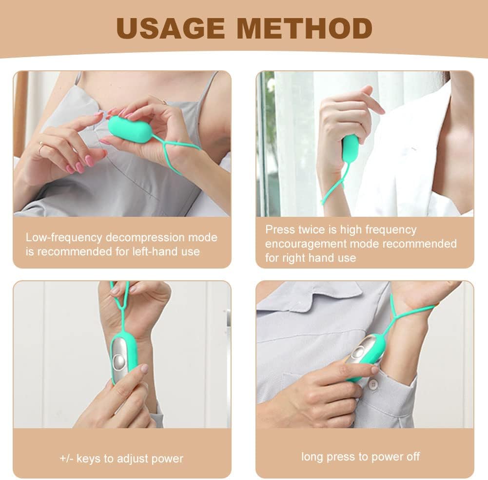 【How to Use】To put the front of the product completely in your hand: Press the power button is the low-frequency decompression mode, which is recommended for left hand.Pressing the power button again is the high-frequency encouragement mode, which is recommended for the right hand.Adjust power with +/- keys on both sides