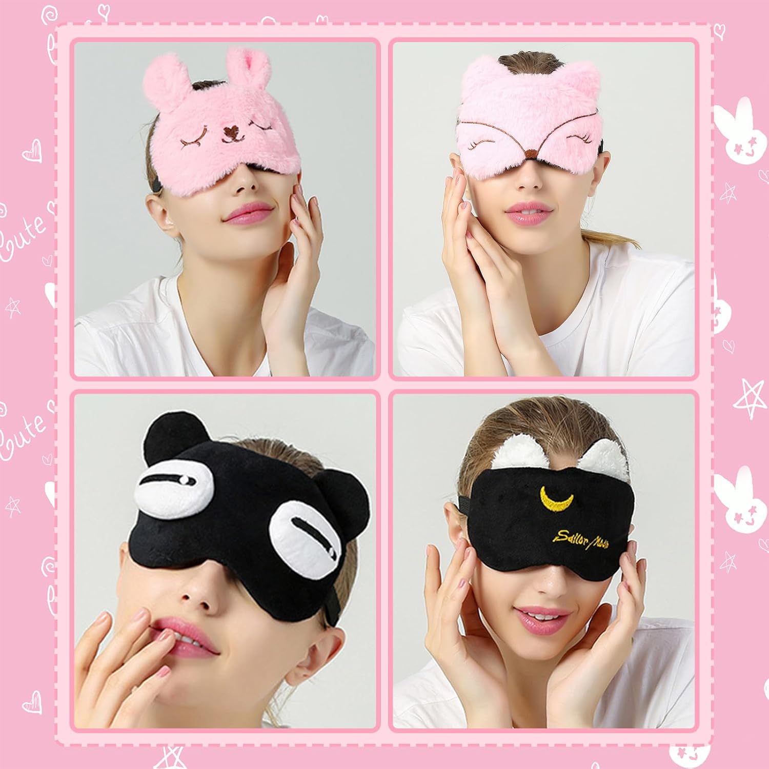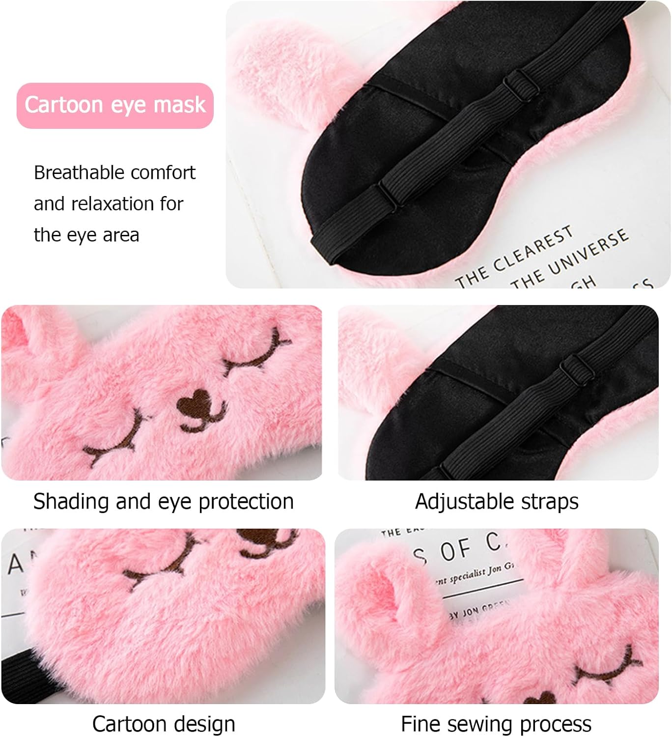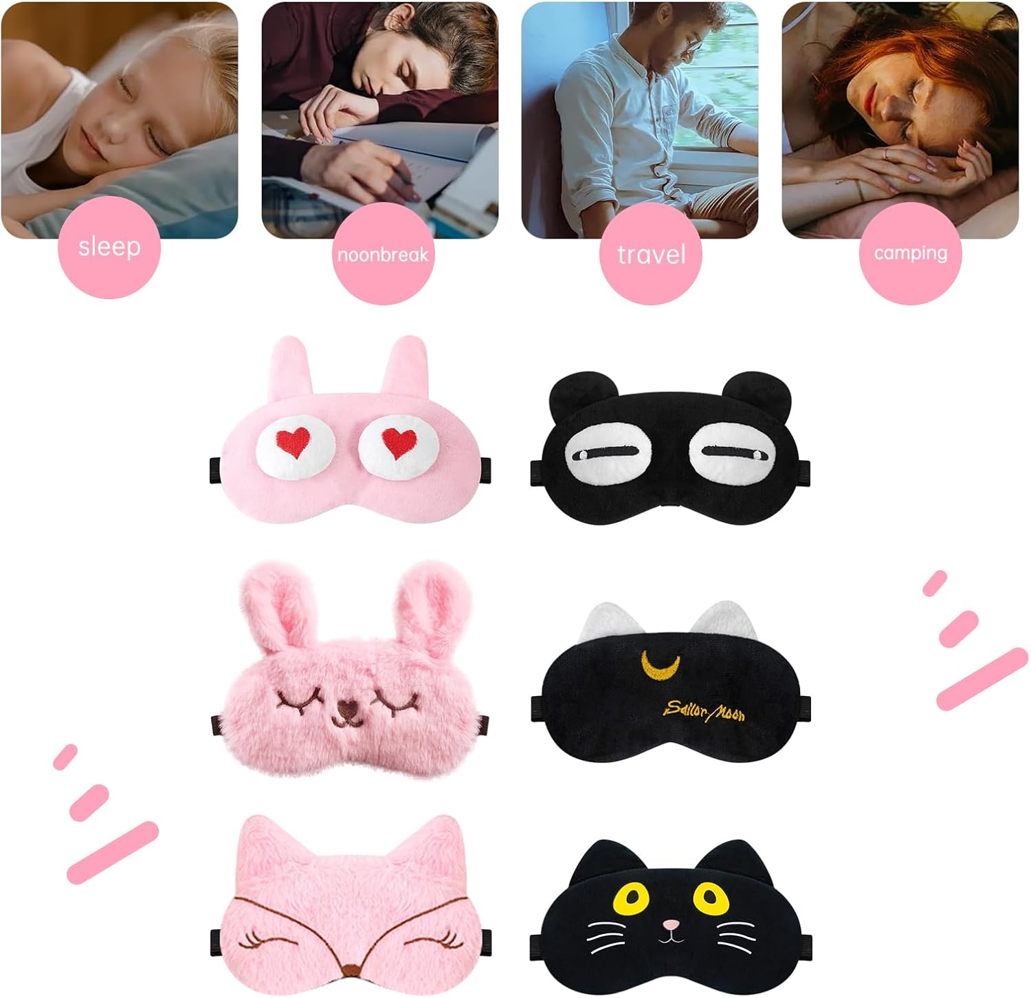Sleep Eye Mask,RoadLoo 6 Pcs Cute 3D Kids Eye Masks Soft Silk Plush Sleep Eye Mask for Women with Adjustable Strap Comfortable and Super Soft Eye mask Ultimate Sleeping aid for Night Sleeping Travel