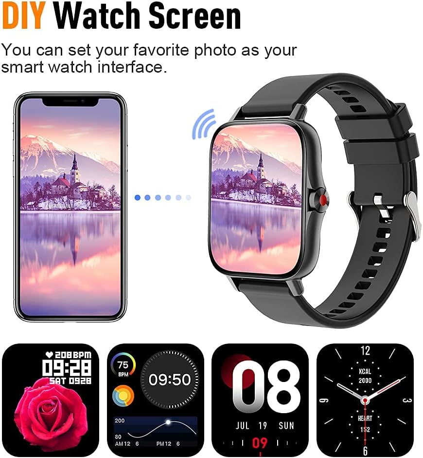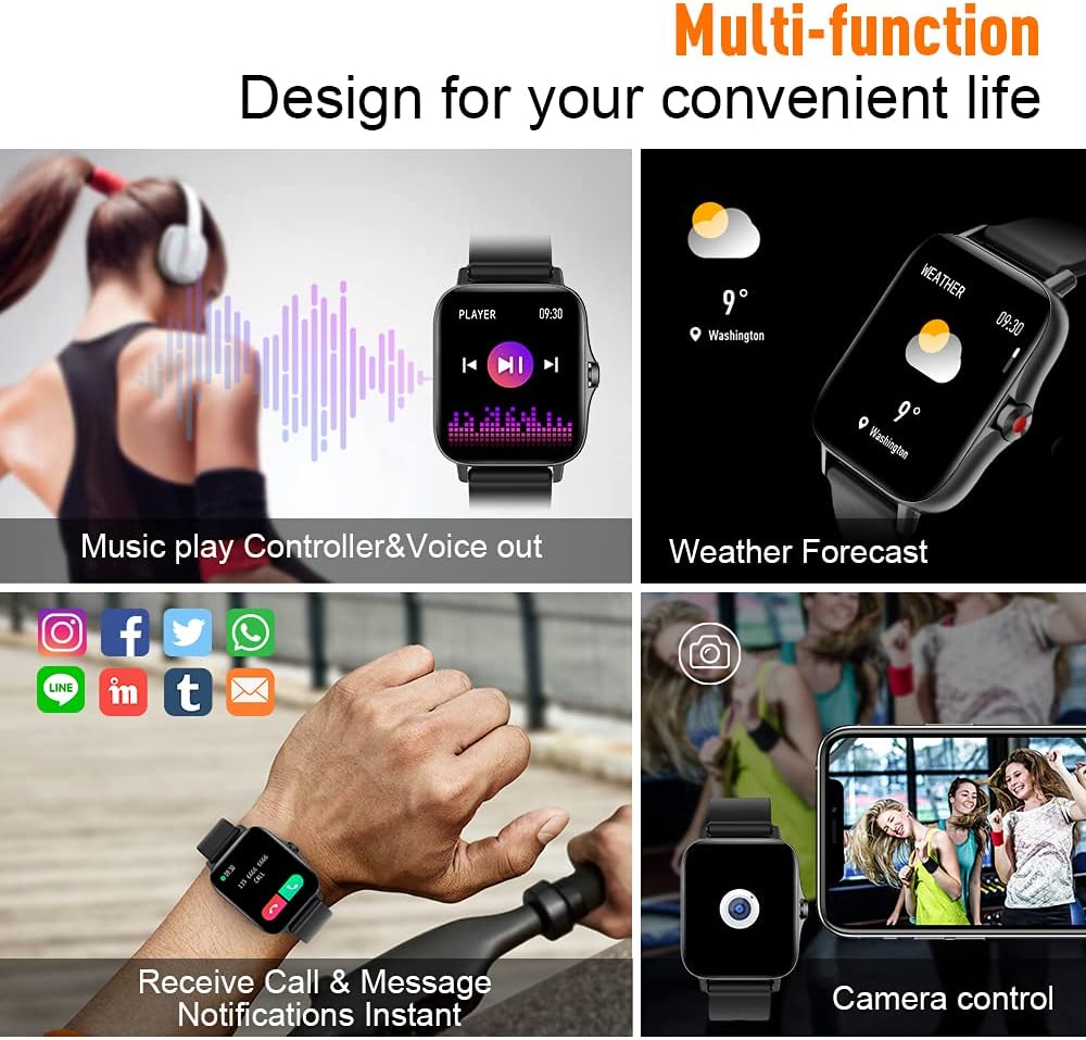1.69 “large touch screen, wear it your way with custom fitness watch faces which fit your style. The smartwatch screen lights up instantly when you lift your wrist,staying visible and clear even in the sun.
