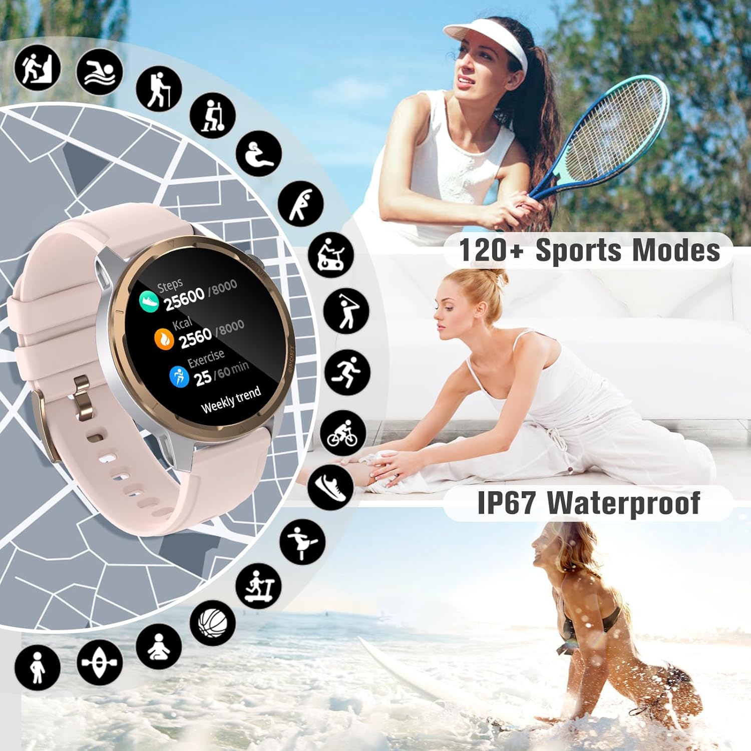 Smart Watch, Bluetooth Activity Tracker with Stress/Heart Rate/SpO2 Monitor, 120+ Sports Waterproof Fitness Smartwatch with Call and Text for Android iOS, 1.39” Touch Screen Health Watches for Women