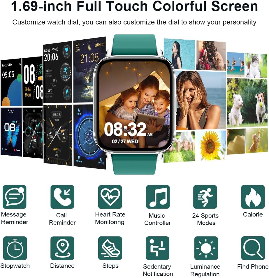 1.69″ Full Touch Screen and Custom Wallpaper: Step counter watch adopt 1.69″ Full Touch TFT Screen with 240*280 resolution ratio offers excellent image quality. Bring you better visual effects. 4 level brightness adjustable. It allows you to read time and data clearly even under the glare. You can also customize the dial, beautiful scenery, personal photos, and more through the mobile App, and freely switch the personalized style.