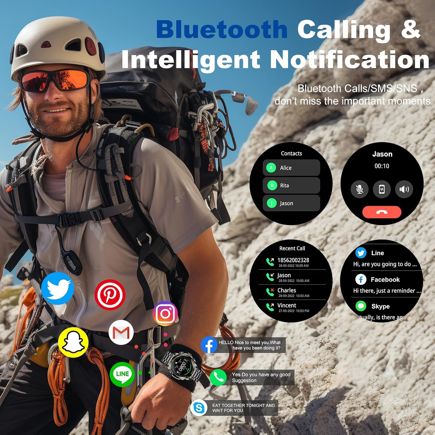 ⌚【Bluetooth Calling】The smart watch for men has a built-in microphone and speaker, and when connected to your mobile phone via Bluetooth, you can answer or make calls directly from your smart watch. You can also view your call history, dial using the keypad, and answer or end calls anytime, anywhere. So you’ll never miss an important call or message while you’re working or playing sports.