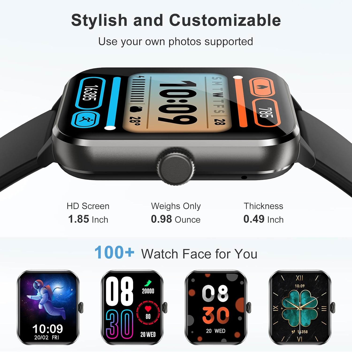 Smart Watch for Men Women, Make/Answer Calls, AI Voice, 1.85” Fitness Watch with SpO2 Heart Rate Sleep Monitor, Fitness Tracker 100+ Sports Modes, Calorie Step Counter Smartwatch for Android iOS