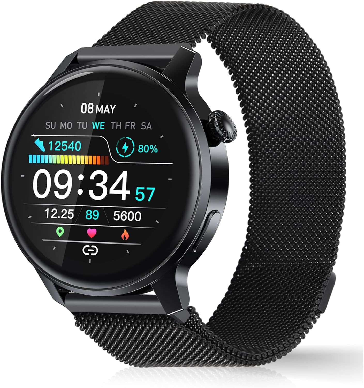 This smartwatch with 1.28-inch round full-touch HD screenCost-effective, stylish, creative, fitness tracker1 x stainless steel watch band with magnetic closure clasp design , dress up your watch from a single sporty look to a decent impression, and give a nice professional look on any occasion1 x silicone watch band ,soft & comfortableAlloy case, personalized style,100+ Dial Faces with DIYThe smartwatch requires the installation of the APP “Gloryfit”. Compatible with Android 5.0 and above, IOS 9.0 and above, support Bluetooth 4.0 and above. It is a one-key connection, and easy to operate.Support English and 12+ languages.Auto-sync with your mobile phone’s language.It is a decent gift for men women, young students, your family members, mom, dad, kids, and friends