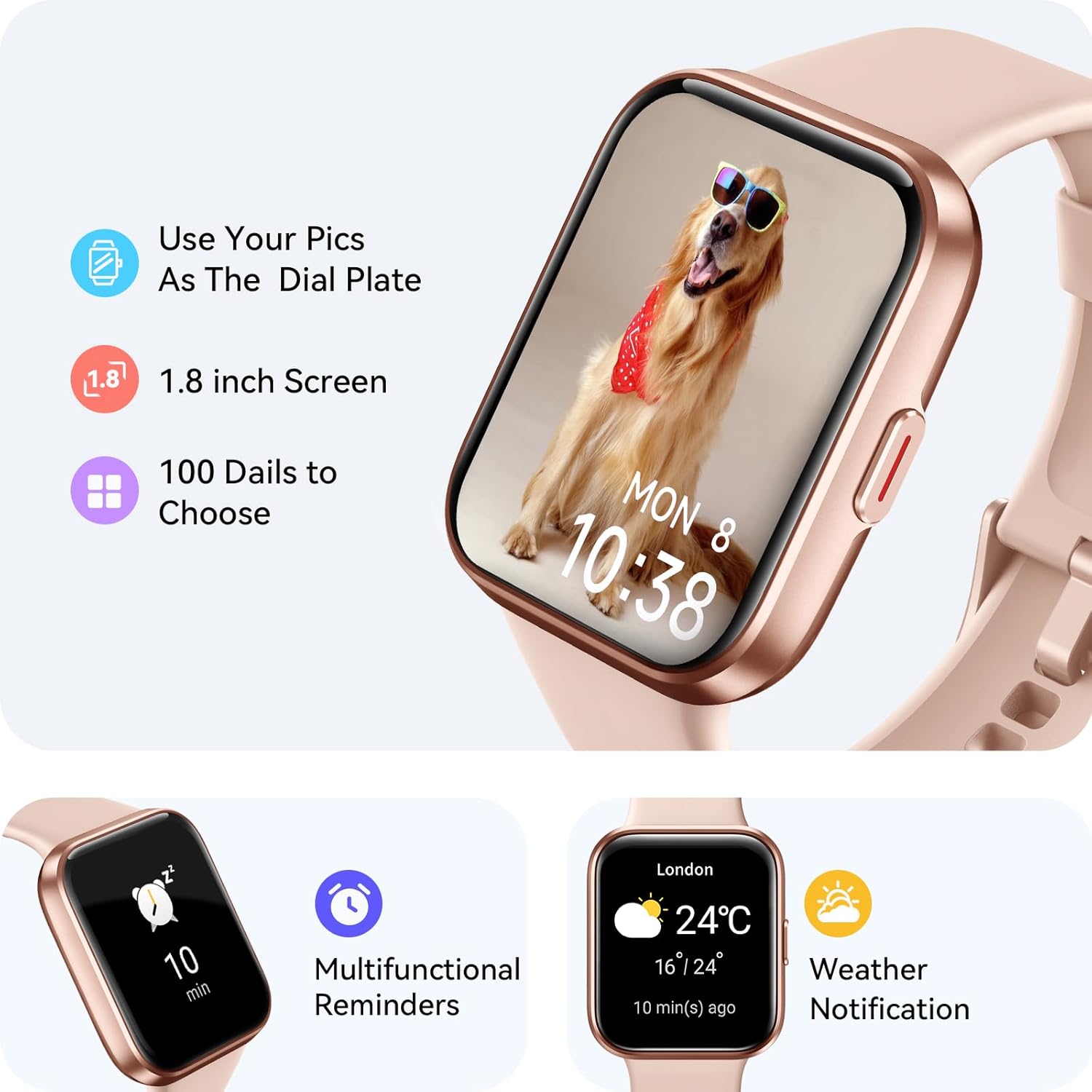 Smart Watch for Women 2023 Version, Answer/Make Calls, Alexa Built-in, 1.8″ Touch Screen Smart Watch with SpO2, Heart Rate, Sleep Monitor, IP68 Waterproof, 100 Sport Fitness Watch for iOS Android