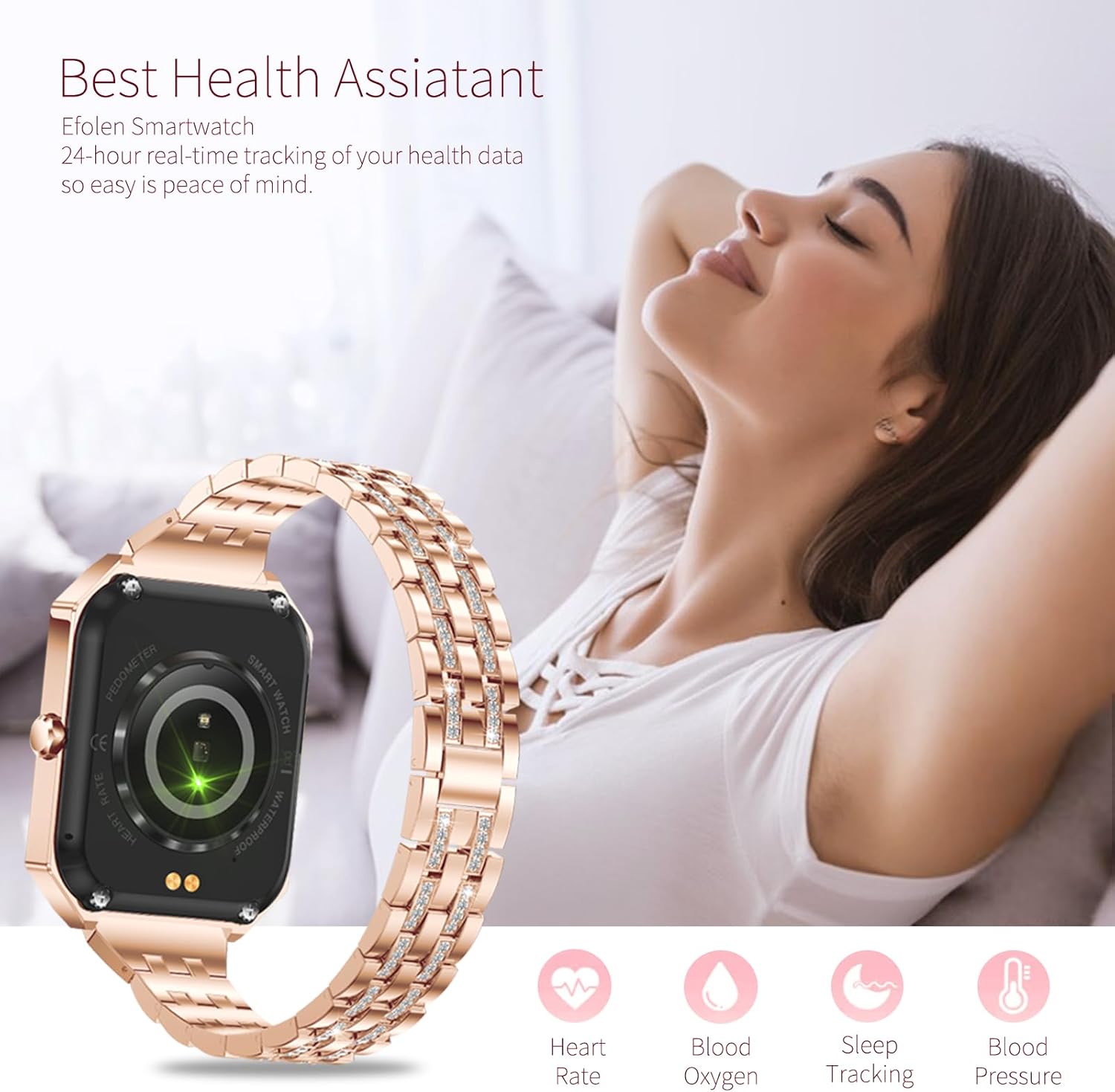 🌸For Women Health🌸 Efolen Smartwatch designed for women is equipped with new function of Recording Women’s Menstrual Cycle. This practical diomanded watch for ladies can accurately record and track your menstrual cycle, which helps you better know and manage your health.