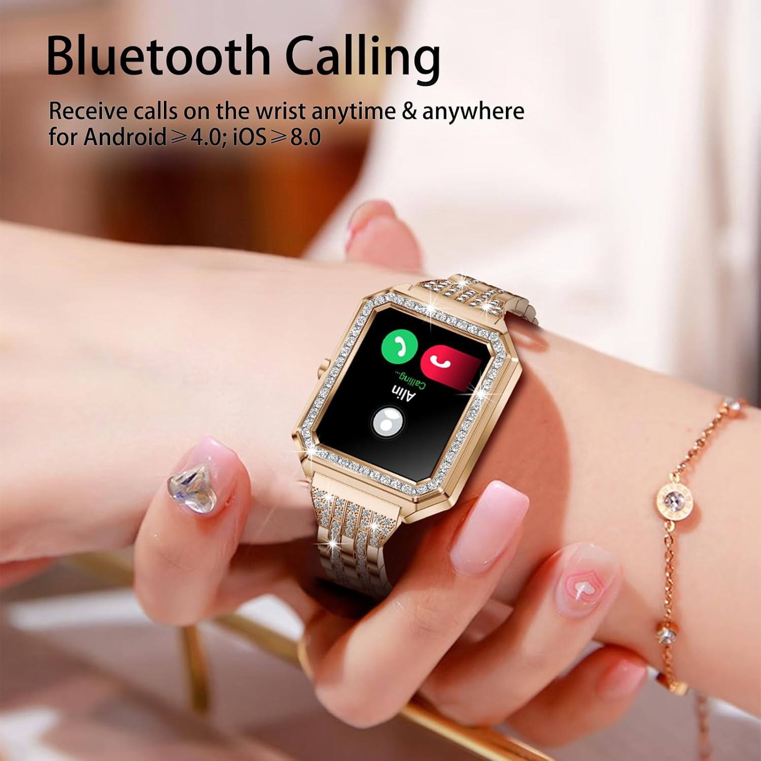 💎First-class Visual Pleasure💎 The square bezel and unique stainless steel bracelet of Efolen’s latest smart watch for women are set with shiny, fine rhinestones. Equipped with a high-resolution 1.59-inch IPS touchscreen color display, this women’s fitness watch with phone function offers the best image quality and viewing angle. You can adjust the brightness of the watch so that it displays clear even in sunlight.It is very functional and easy to use