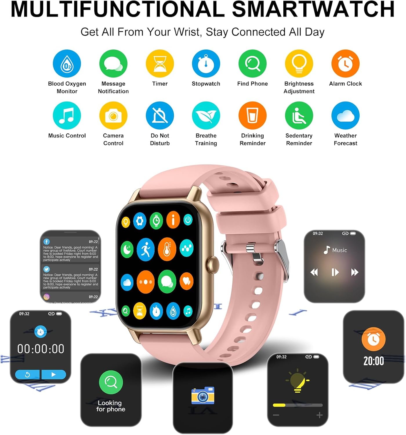 Make/ Answer Call and Smart Notifications: After connecting to Bluetooth, with the built-in microphone and high-fidelity speaker, you can make and receive calls directly on the fitness watch, keeping you in touch with family or friends anytime, anywhere. Smart watch also supports information reminders and social media notifications (Facebook, WhatsApp, Instagram, Twitter, etc). All notifications are displayed on your wrist and reminded by vibration.