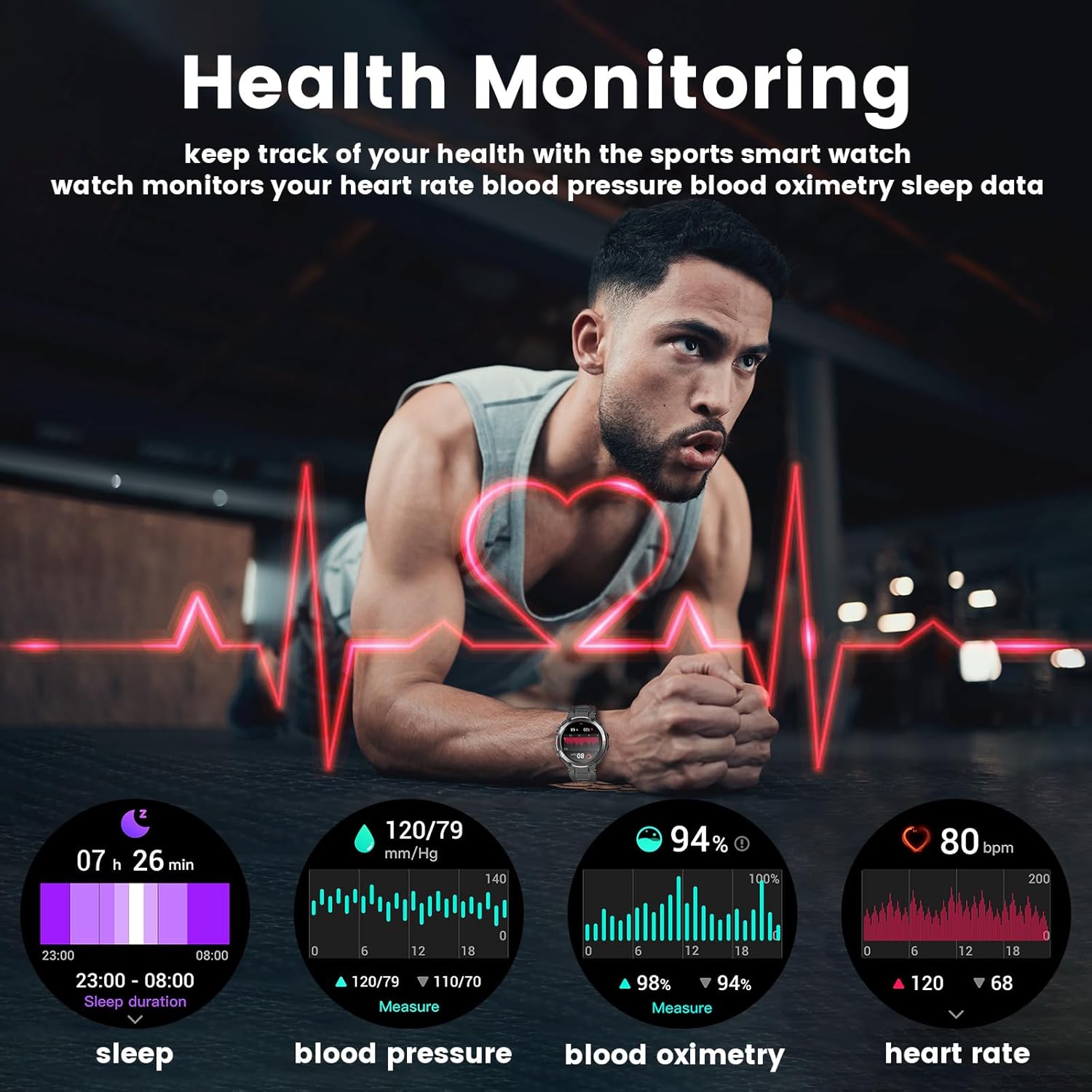 Smart Watch Men Bluetooth Call: 1.42″ Touch Screen Fitness Watch with Waterproof Heart Rate Blood Pressure Oxygen Sleep Monitor Activity Tracker Step Counter Smartwatch Sports for Android IOS Round