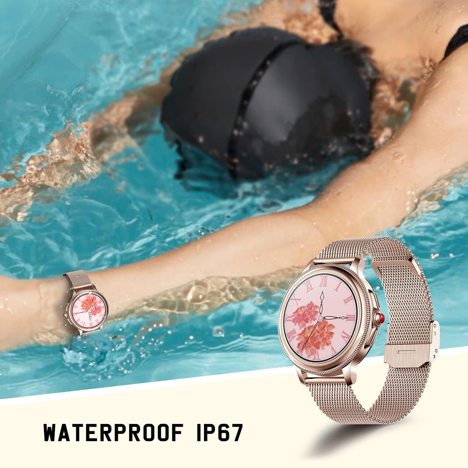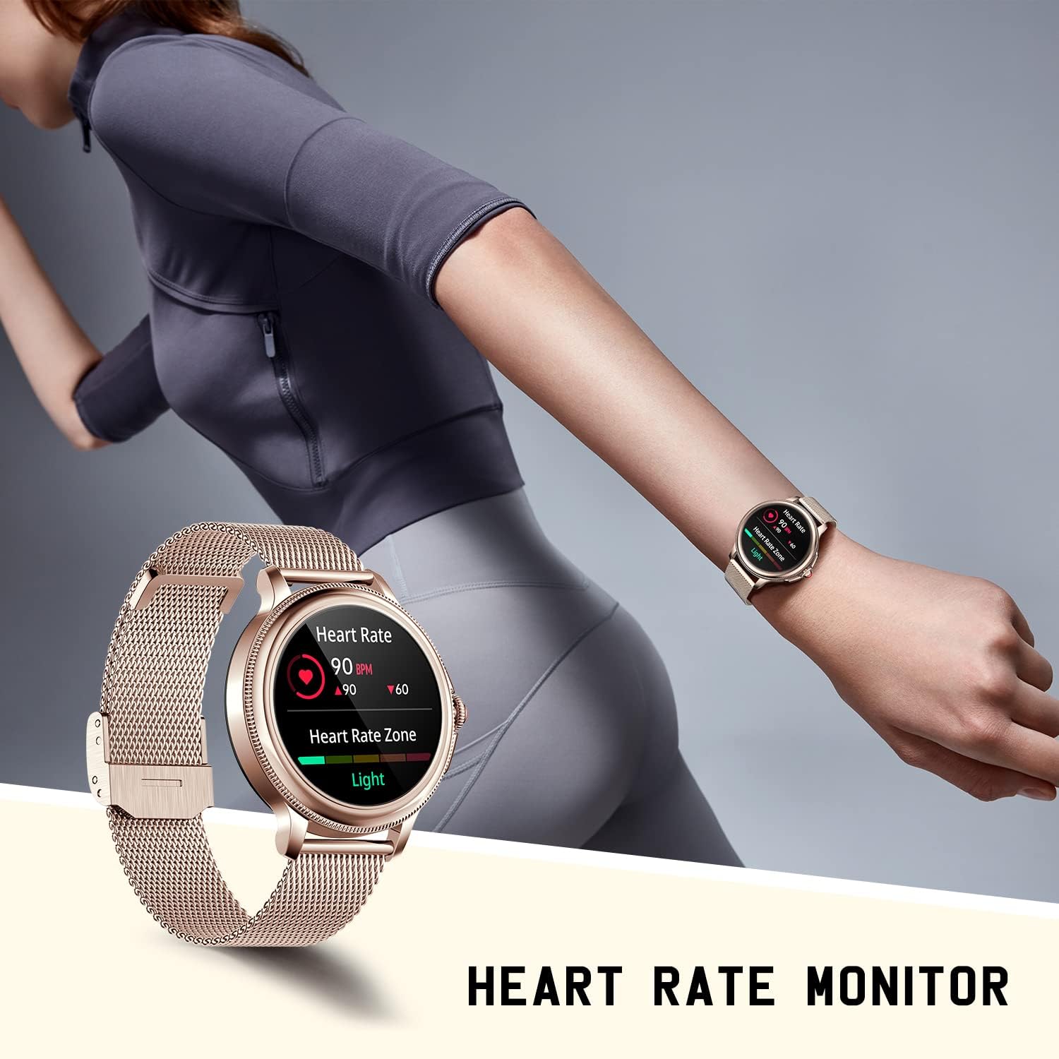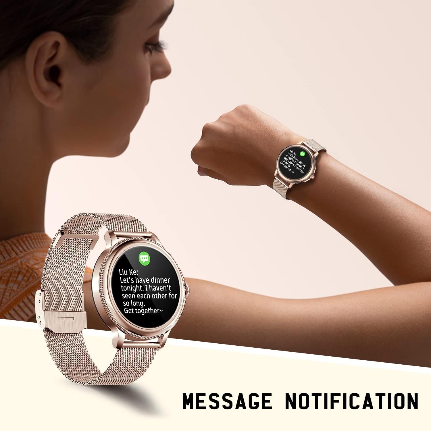 HD Screen & Customize dials:equipped with 1.2 inch round HD display, More fashionable and beautiful, more suitable for women.Equipped with 2 set of straps. You can also choose your picture as the watch faces, such as your selfie or a photo of your kid, family, pet ,etc.