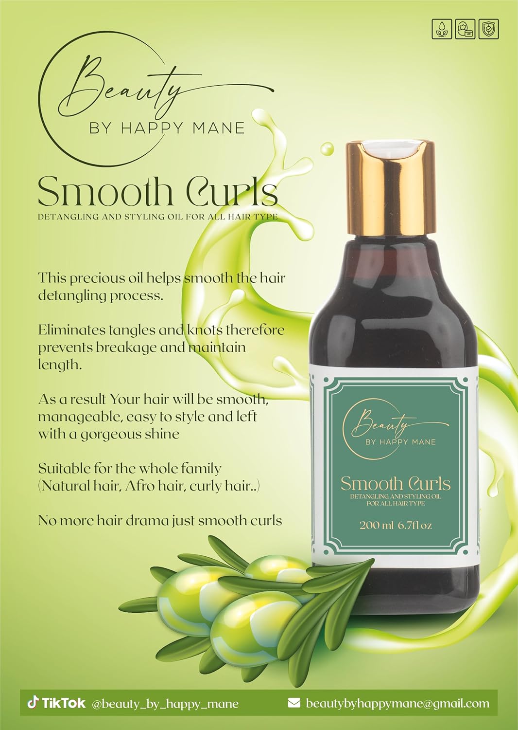Smooth curls by Happy Mane hair growth oil with Rosemary, Avocado, grapeseed oil – Natural Detangler for Curly & Afro Hair, Enhances Shine, Strength – For Men & Women, kids – 7.03 Oz / 200ml