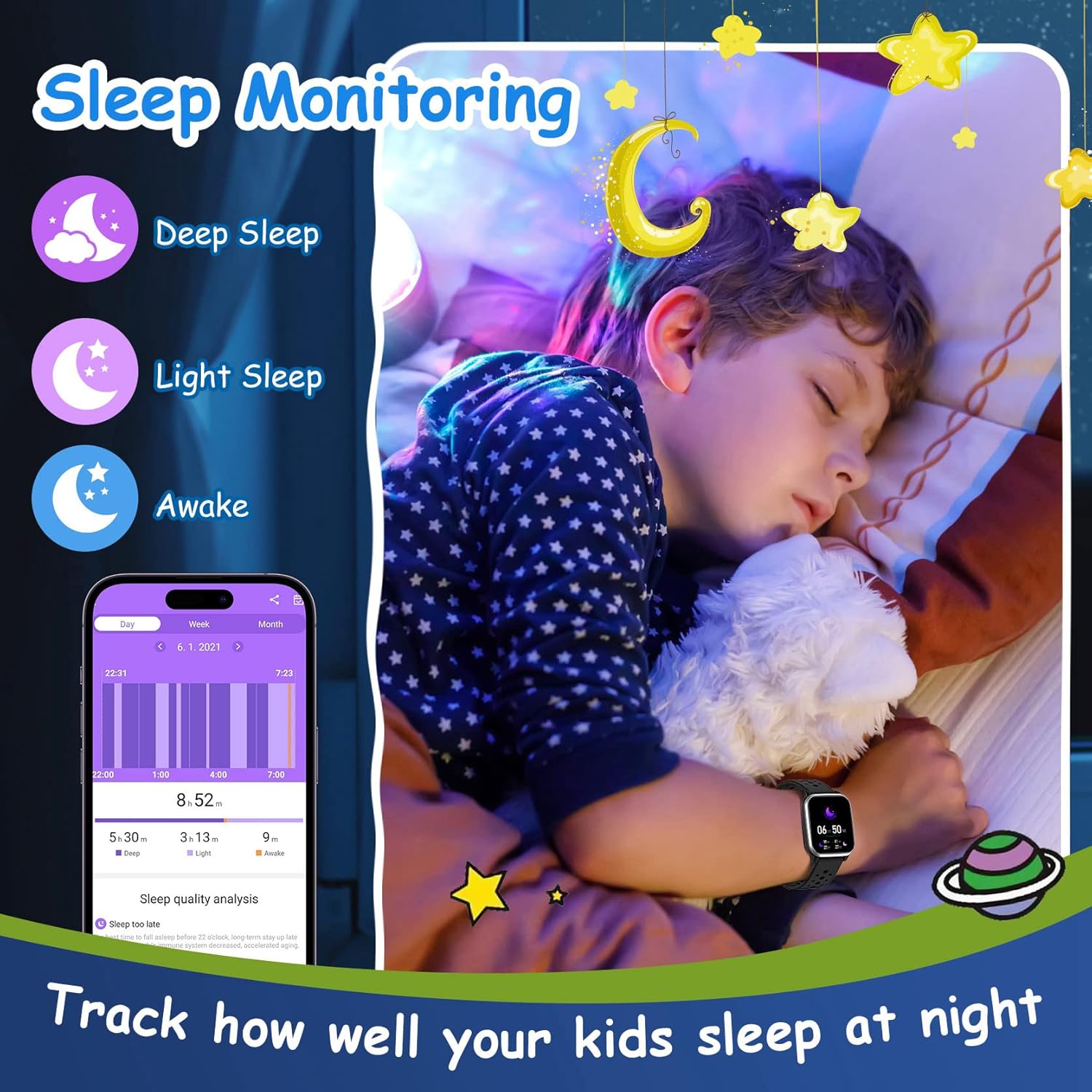 Heart Rate & Sleep Tracker: Automatically monitor your kids daily real-time heart rate and track how well your kids sleep at night.