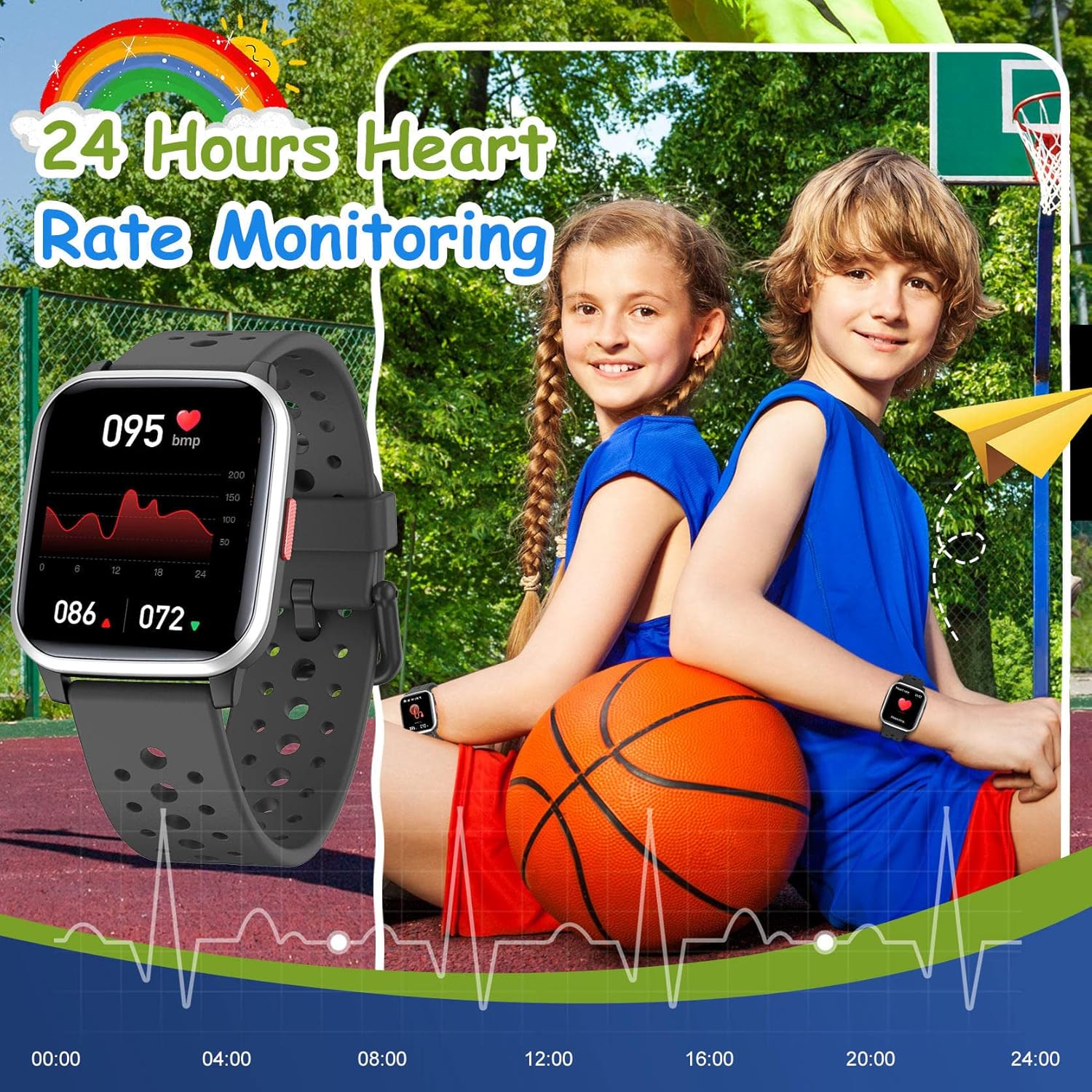 SOPPY Kids Smart Watch for Boys Girls,Fitness Tracker for Kids, Activity Tracker with Games, Pedometer, Heart Rate & Sleep Monitor, Stopwatch, IP68 Waterproof, Gifts for Boys Girls Teens – Black