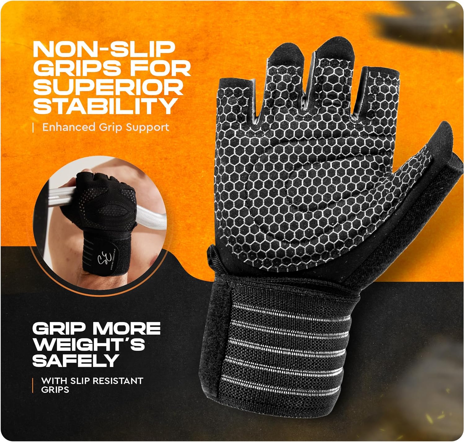Special Essentials Weightlifting Gym Gloves for Men and Women – Fingerless Workout Gloves with Non-Slip Padding and Wrist Strap – Perfect for Exercise, Cycling & Training