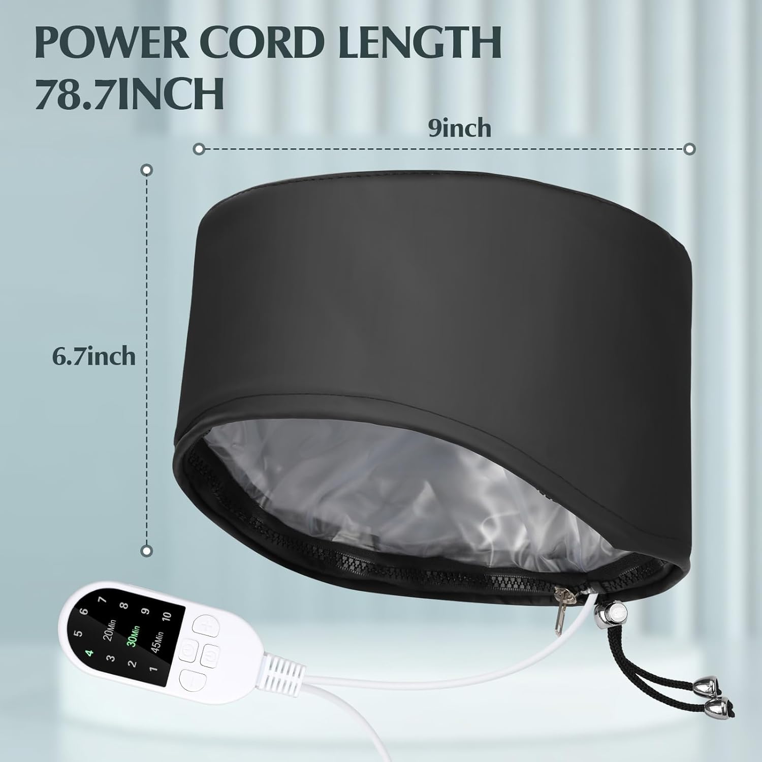 【Perfect Size for Home Hair Salon】Our Heating Cap is wide and deep, ensuring you easily cover the back, front and edges of your head. Moreover, even if you have limited space at home, there will always be a place for this portable and handy hair steamer heat cap. The compact size also makes it easily portable to carry it any places while traveling.