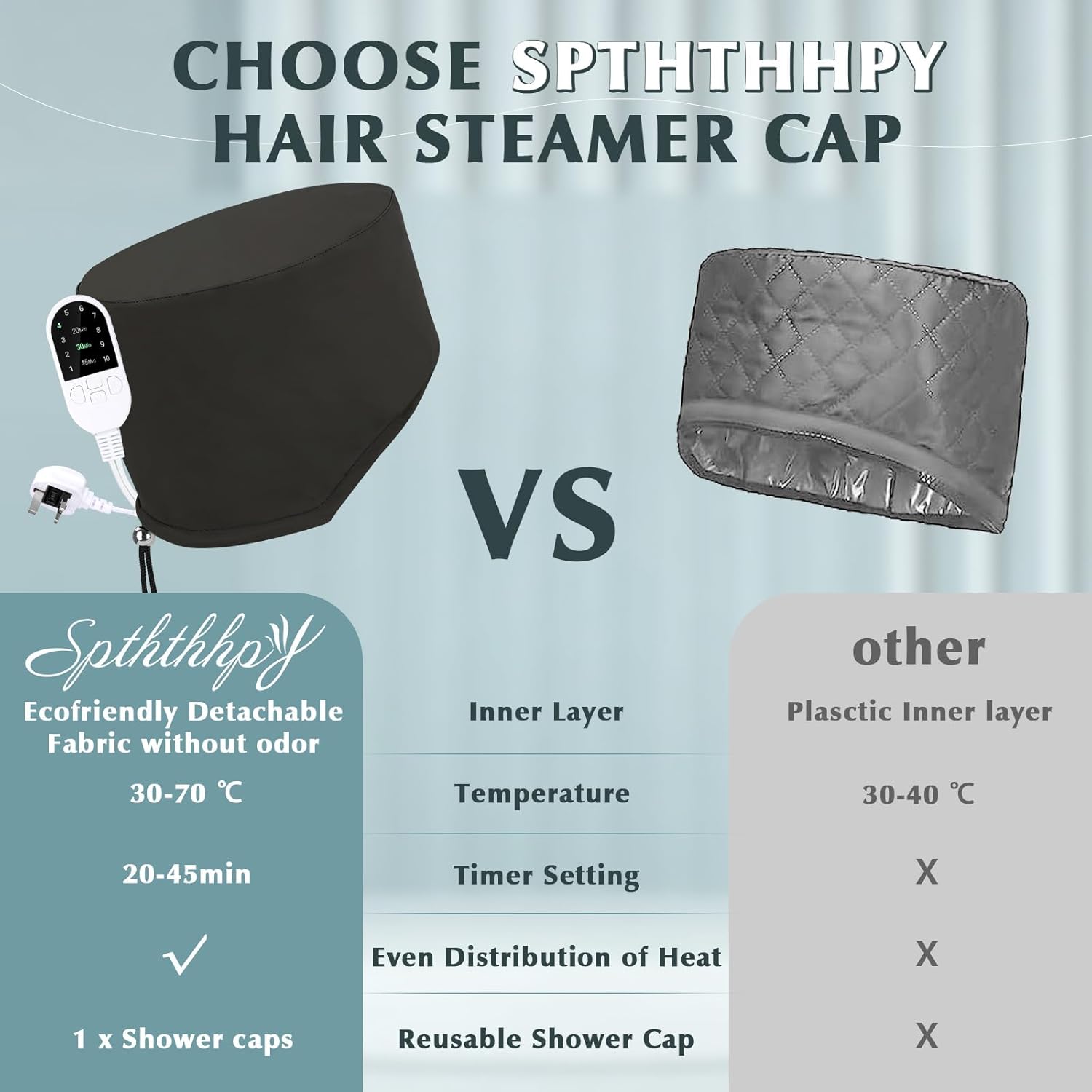 SPTHTHHPY Hair Steamer Cap,10 Temperature Settings 3 Timing Drying Cap Hair Steamer,Heating Cap,Hair Care Hat for Home Hair Spa-UK 3-pin Plug
