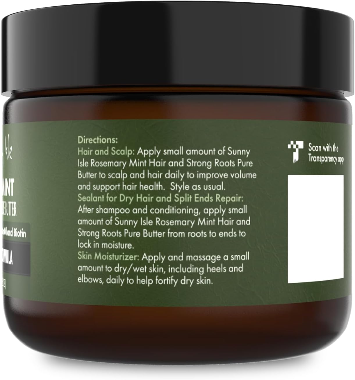 STRENGTHEN & NOURISH: Sunny Isle Rosemary Mint Hair & Strong Roots Butter is a nutrient-rich, Biotin-infused and Jamaican Black Castor Oil infused hair and scalp routines. Use for daily hair care routines or specialized scalp care to strengthen, restore, and prevent breakage and promote longer thicker shiny hair. Enjoy the pleasant, fresh and invigorating minty scent.