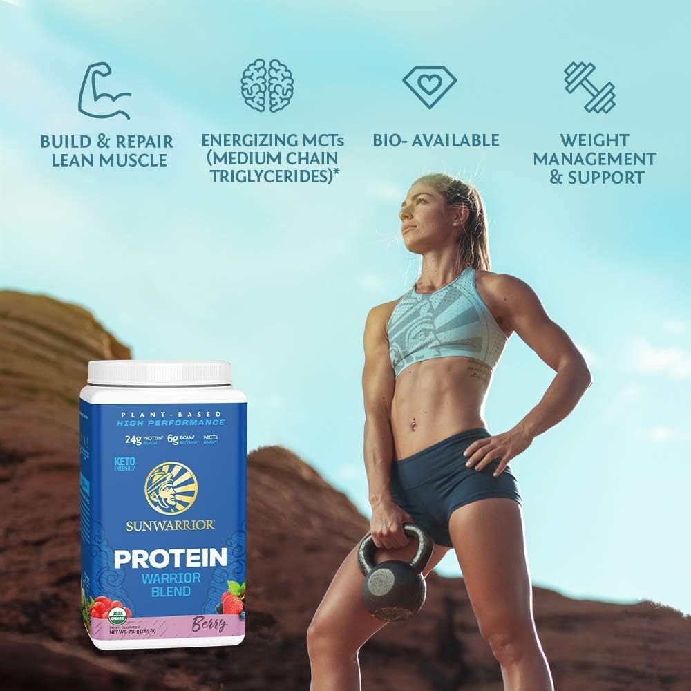 Sunwarriorr Vegan Organic Protein Powder Plant-Based | BCAA Amino Acids Hemp Seed Soy Free Dairy Free Gluten Free Synthetic Free Non-GMO | Berry 30 Servings | Warrior Blend