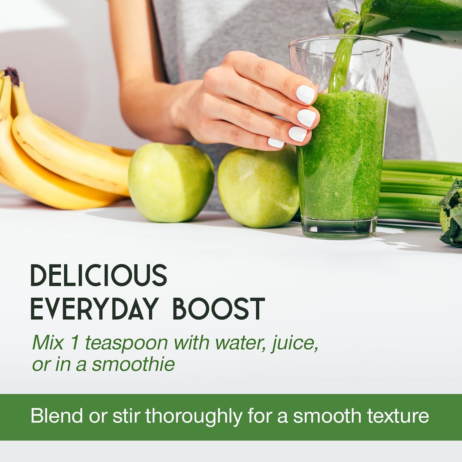 QUICK, EASY AND PLEASANT – Make your health a priority by centring it in a simple daily ritual. Mix 1 teaspoon with a glass of water or fruit juice, and stir well – or add to your smoothie with all the ingredients in a blender. Thoughtfully designed to be supportive of gut health and energy levels, this green powder is suitable for daily use.