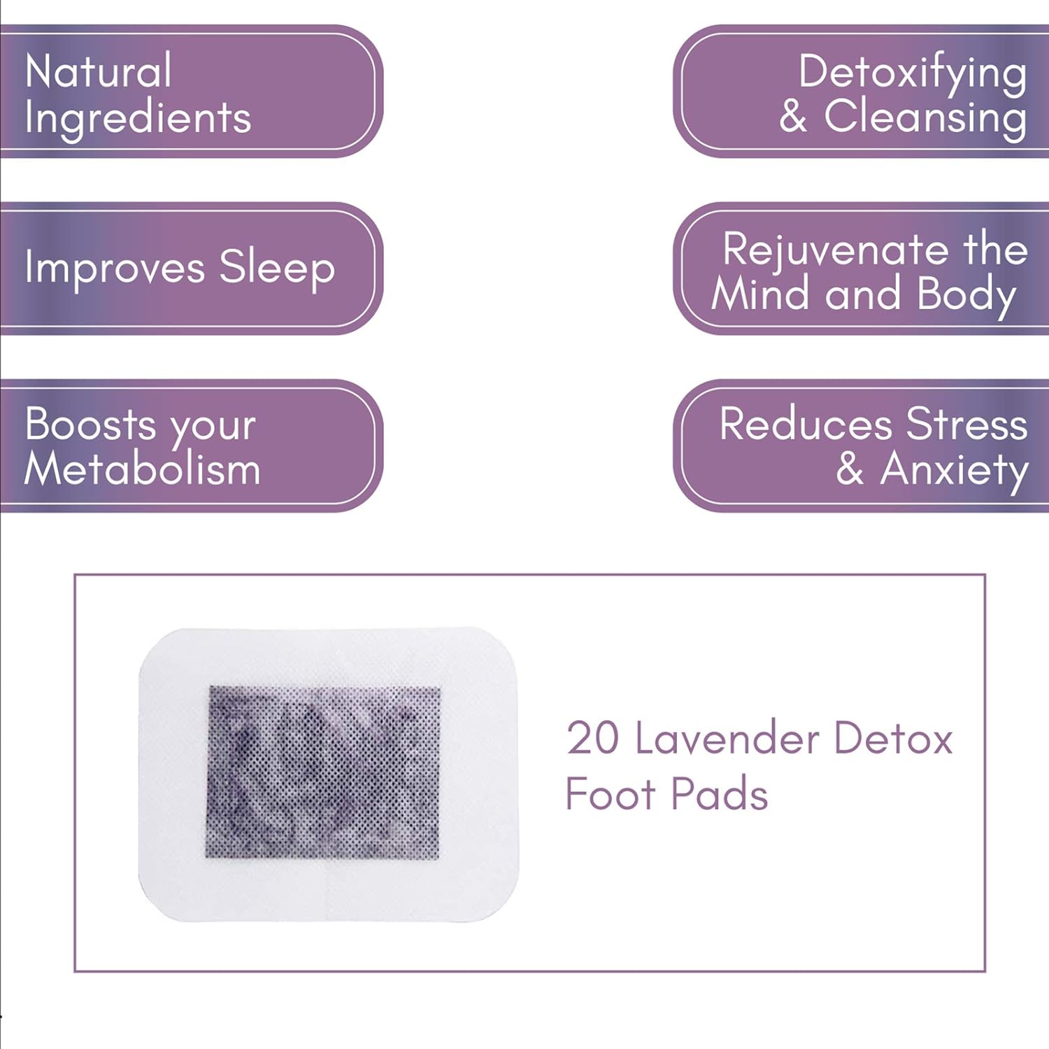 Tanness 20 Pack Lavender Foot Pads | Detox Foot Patches | Foot Spa Deep Cleansing Pads with Adhesive Films for Removing Body Toxins, Migraine Relief, Foot Care, and Sleep Aid (Lavender)