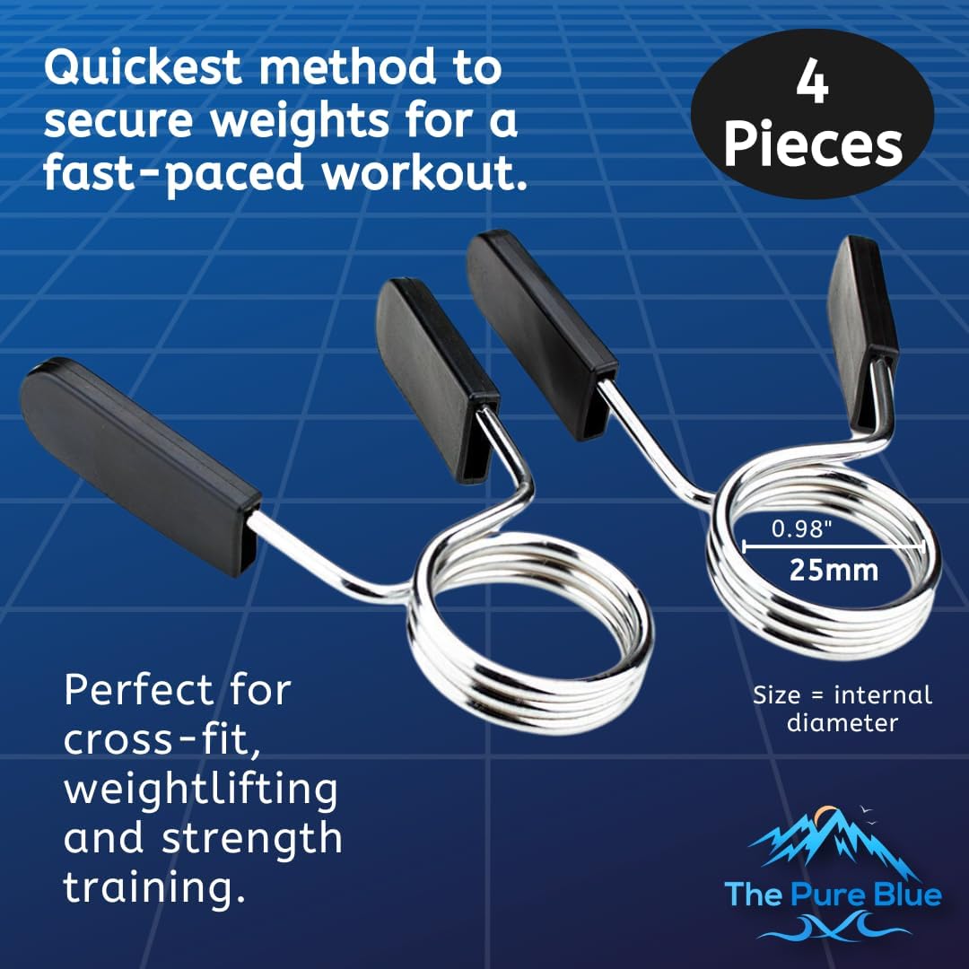 The Pure Blue Spring Steel Weight Clips Metal Clamps for Barbells, Dumbbells, Bars. Weightlifting and Strength Training Essential. Gym Accessories and Fitness Equipment. 4 Sizes.